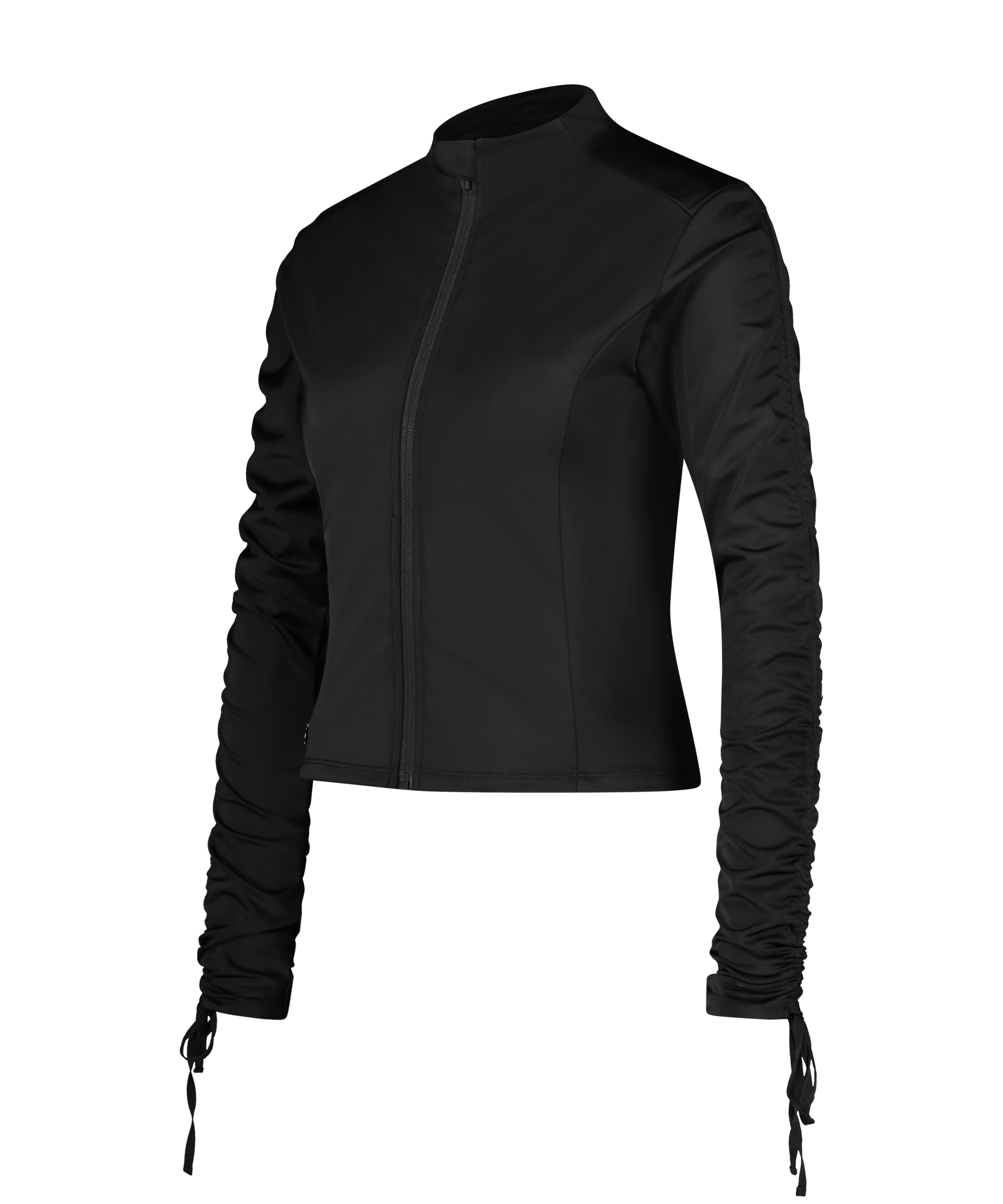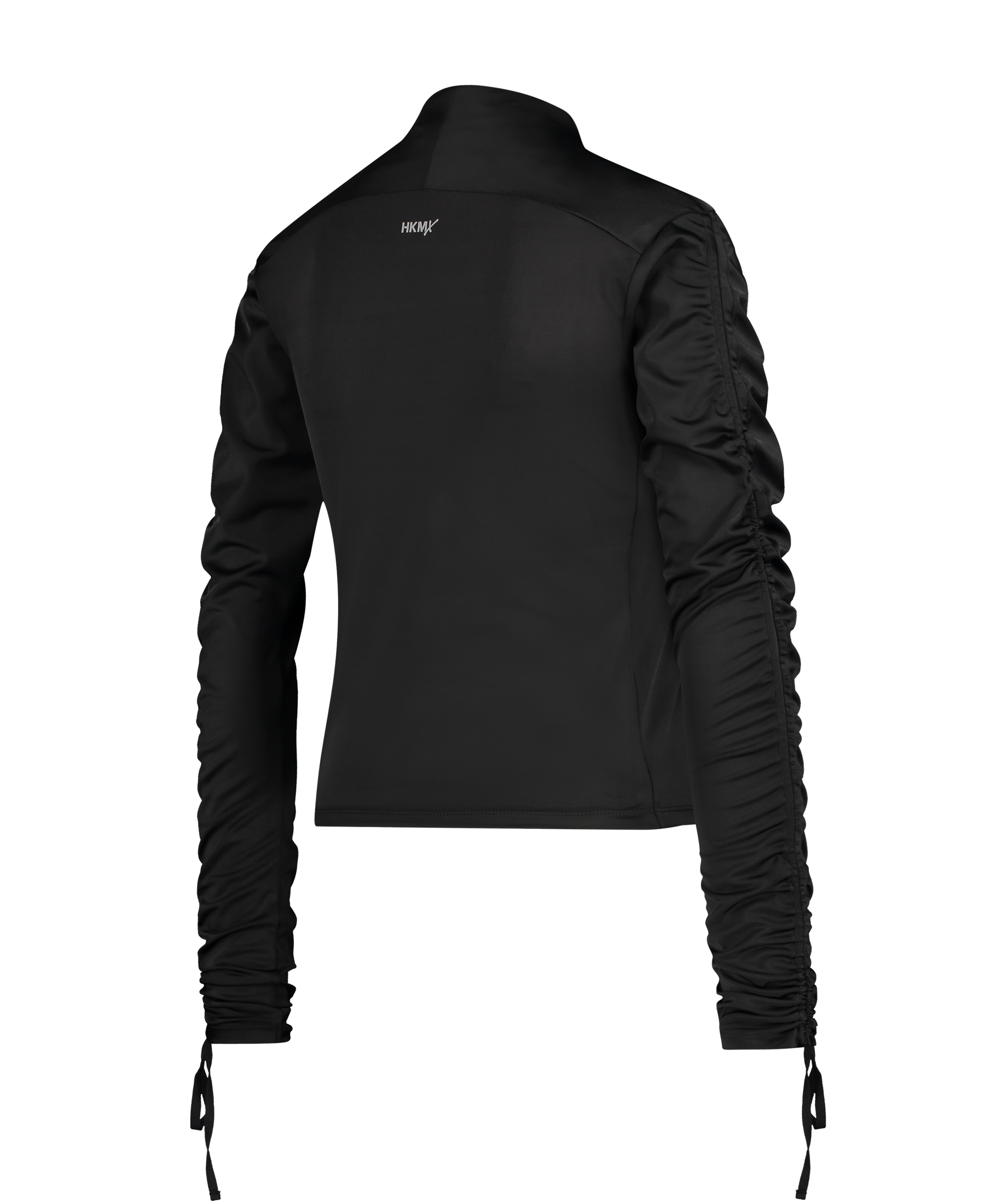 ¡Cierra la cremallera y concéntrate en tus objetivos con esta divertida chaqueta deportiva con volantes! Tiene una tira en las mangas para que puedas crear un bonito efecto de volantes. Combínalo con otros artículos HKMX para completar tu look deportivo.