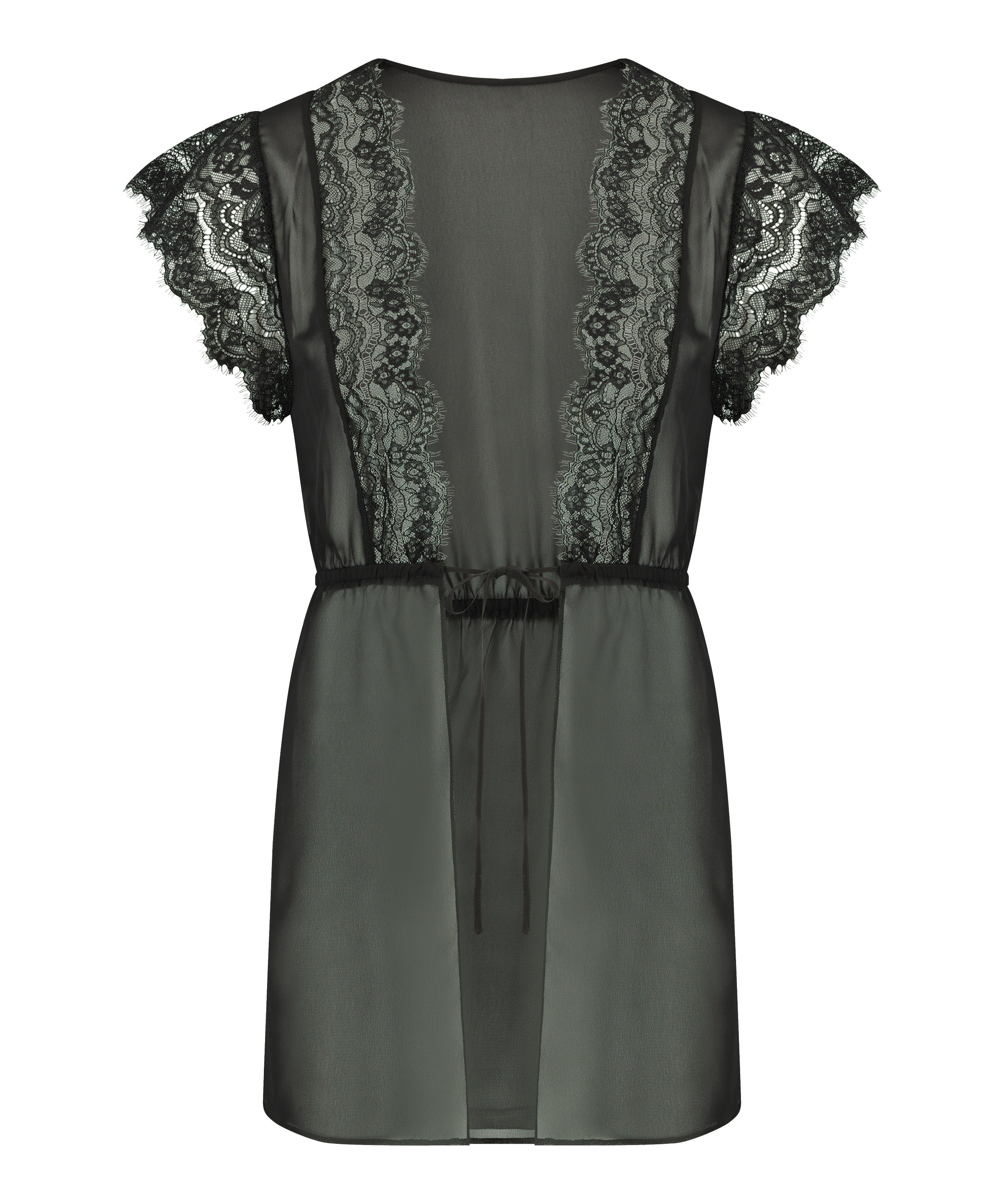 En casa, sexi y cómoda a la vez con este kimono tan sensual. Con un acabado semitransparente ¡y mucho encaje! Además, puedes atarlo a tu gusto gracias a la cinta en la parte delantera. ¡Ideal! Tiene las piernas abiertas por ambos lados. ¡Combínalo con las prendas a juego!