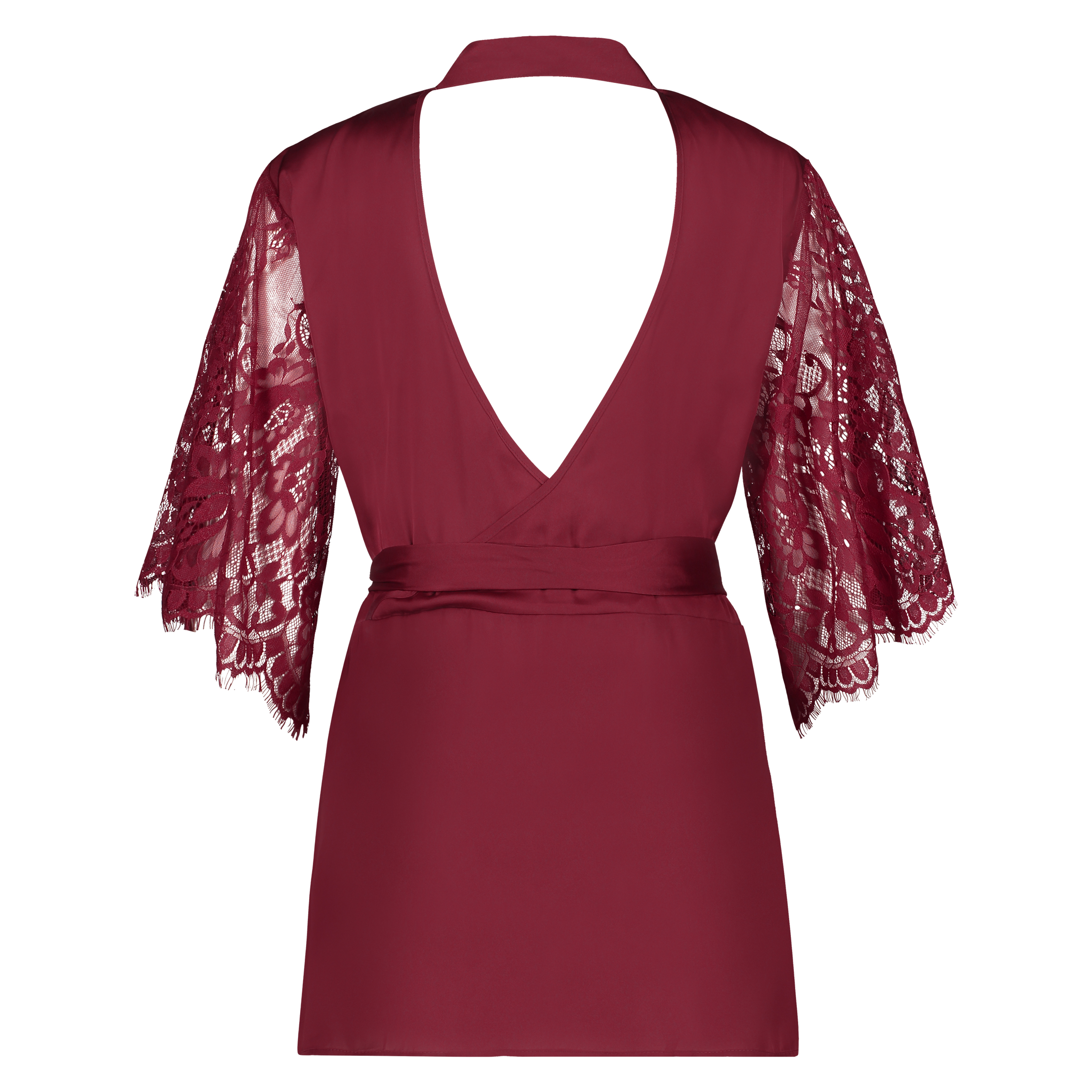 Este kimono tiene un look and feel satinado. Las amplias mangas de encaje le dan un toque súper sexi. ¡Algo que no puede faltar! Combínalo con un bonito vestido combinación para completar tu conjunto. Forma parte de la colección Private.