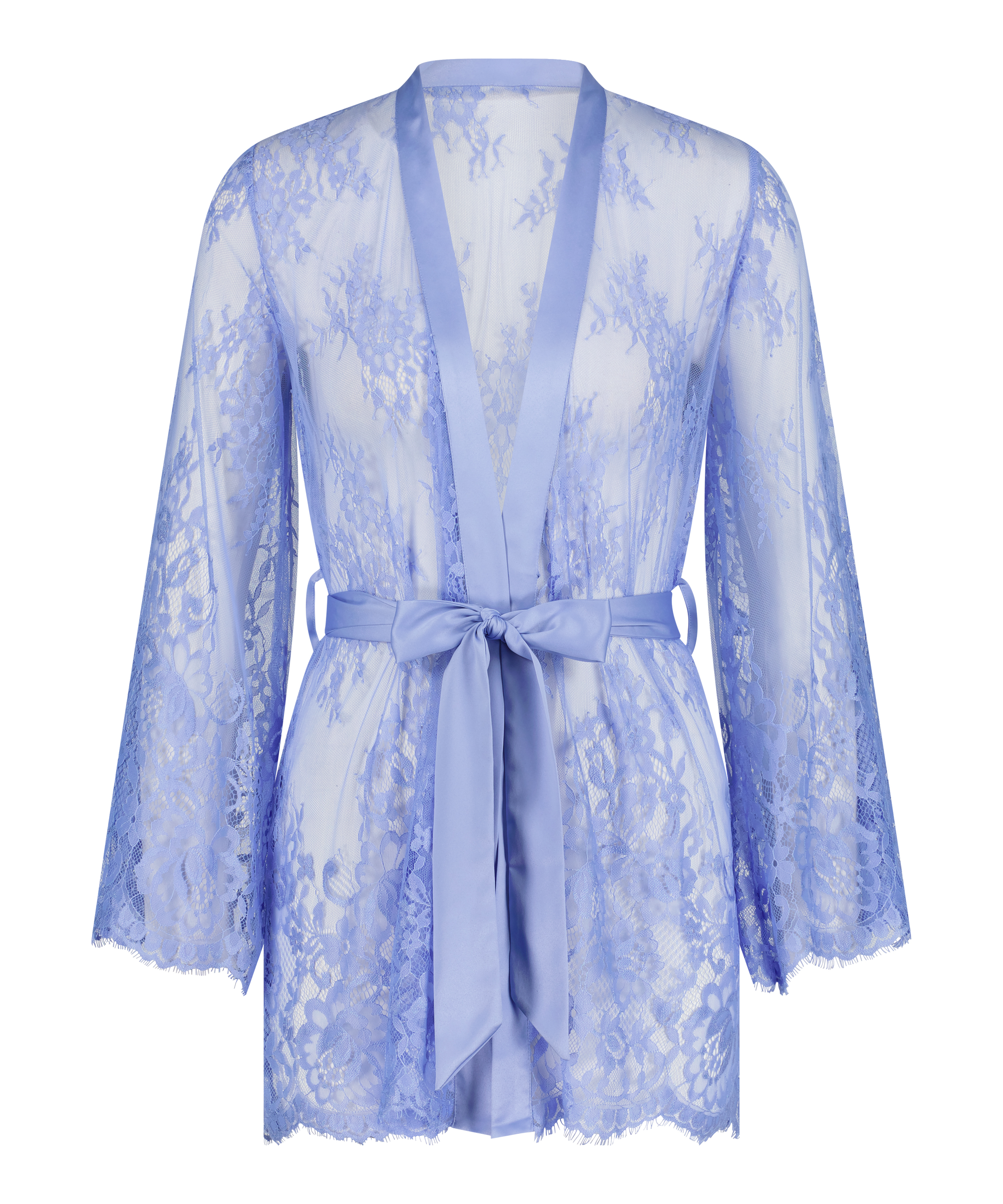 Encaje, sexi, femenino, ¡este kimono lo tiene todo! La prenda está hecha de encaje transparente y tiene bonitos detalles de kimono es de encaje semitransparente y tiene bonitos dispone de detalles sedosos. Se puede anudar en la parte delantera.