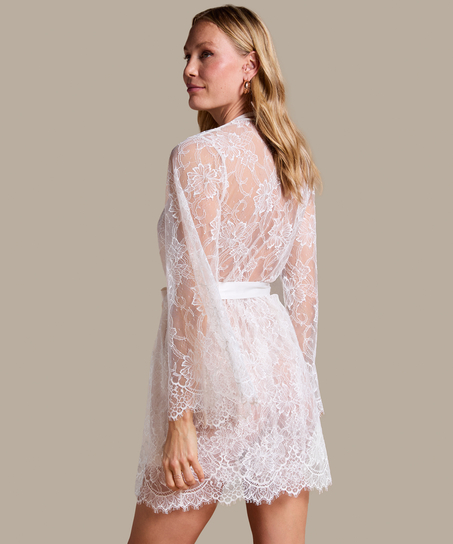 ¡Te encantará este kimono lace! Tiene un aspecto completo semitransparente, con una faja de raso con cierre de lazo frontal. ¡Llévalo con el vestido combinación a juego! Forma parte de nuestra Colección Noir.