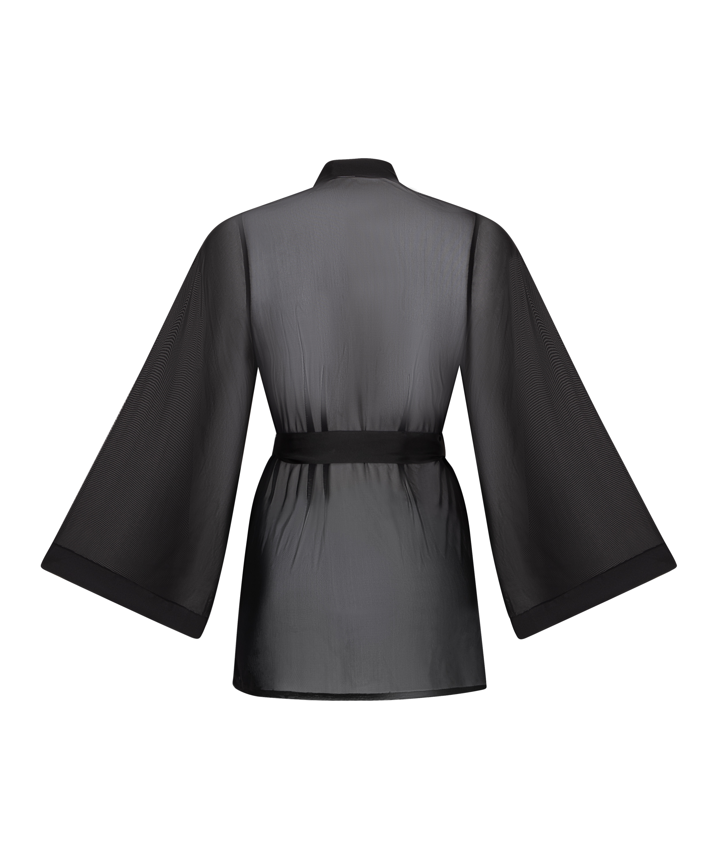 Este kimono está elaborado de un precioso tejido malla. El kimono se puede abrochar por la parte delantera con nudo.