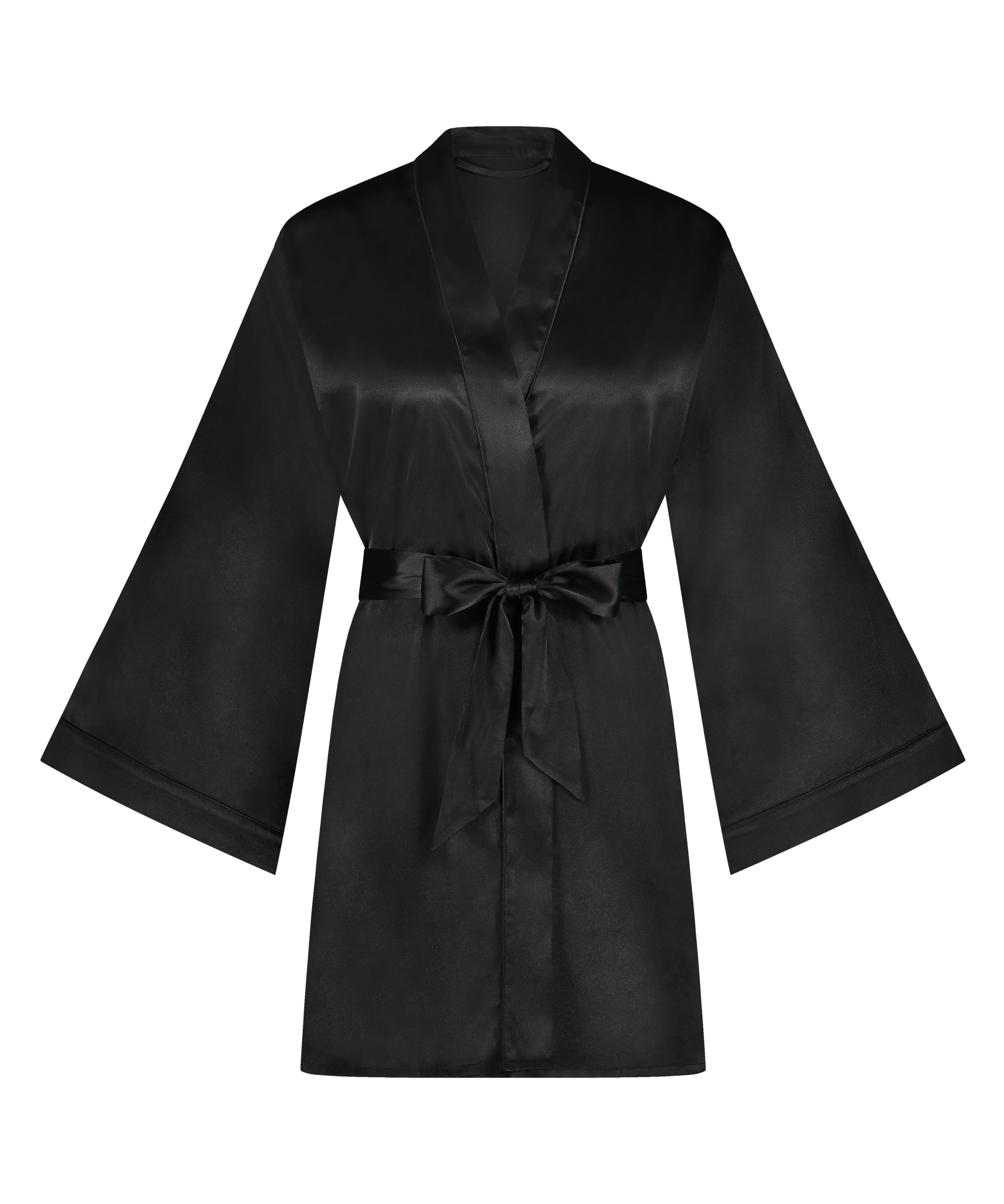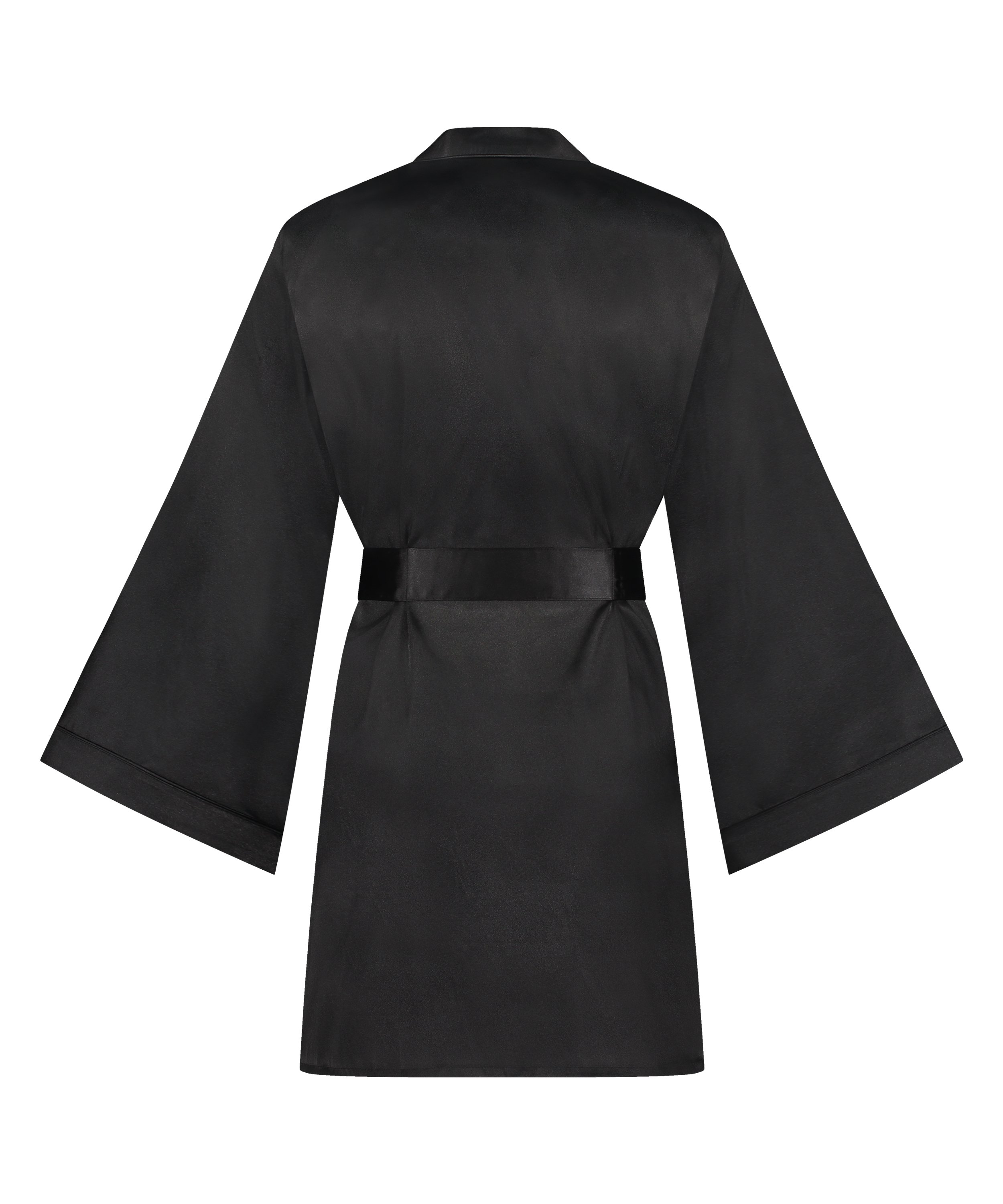 Este kimono está elaborado de un precioso tejido satinado. El kimono se puede abrochar por la parte delantera con nudo.