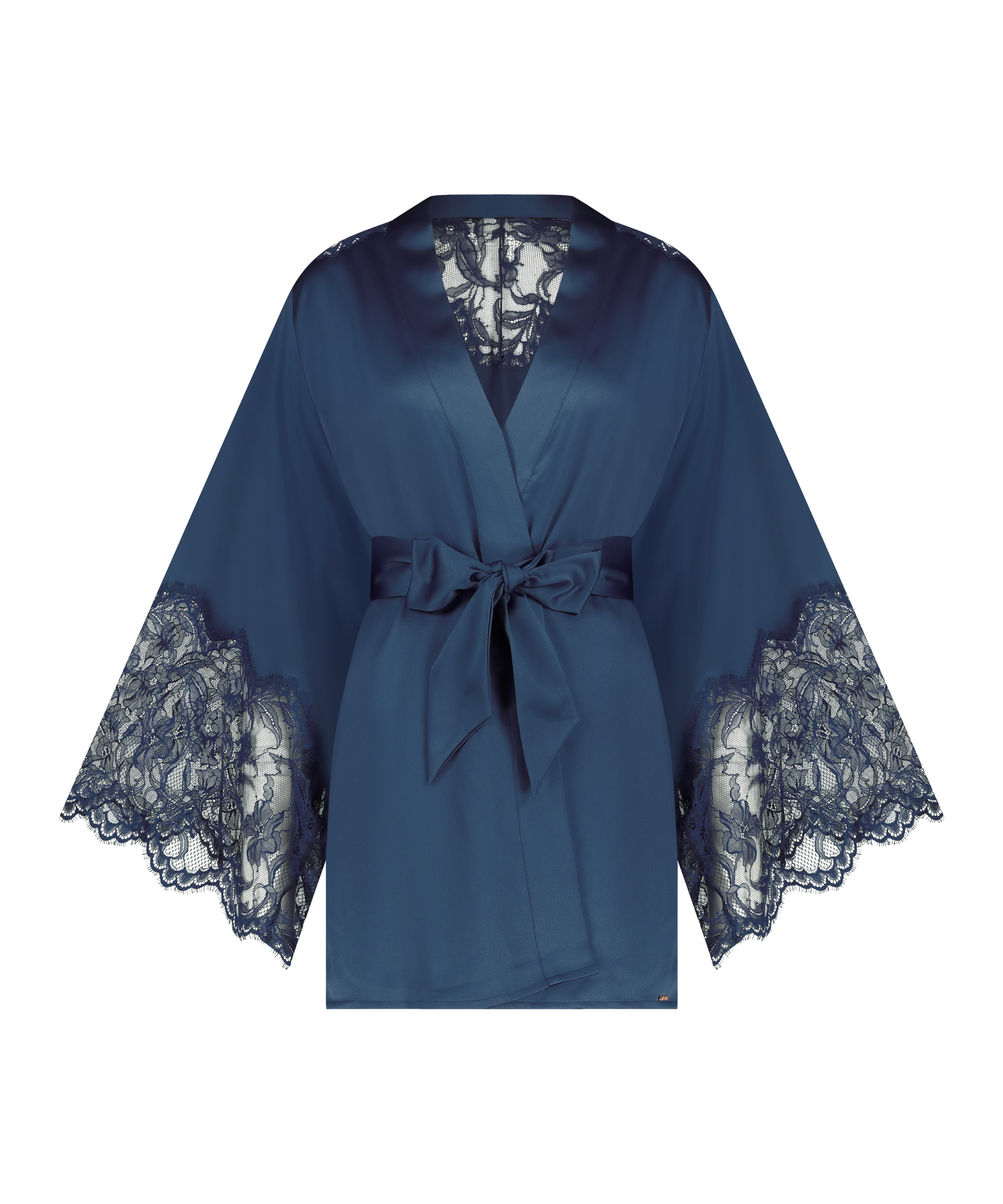 Añade elegancia a tu rutina nocturna con este precioso kimono. Con un «look» totalmente satinado y románticos detalles de encaje en las muñecas y la espalda. ¡Combínalo con cualquier conjunto de ropa de noche para completar el «look»!