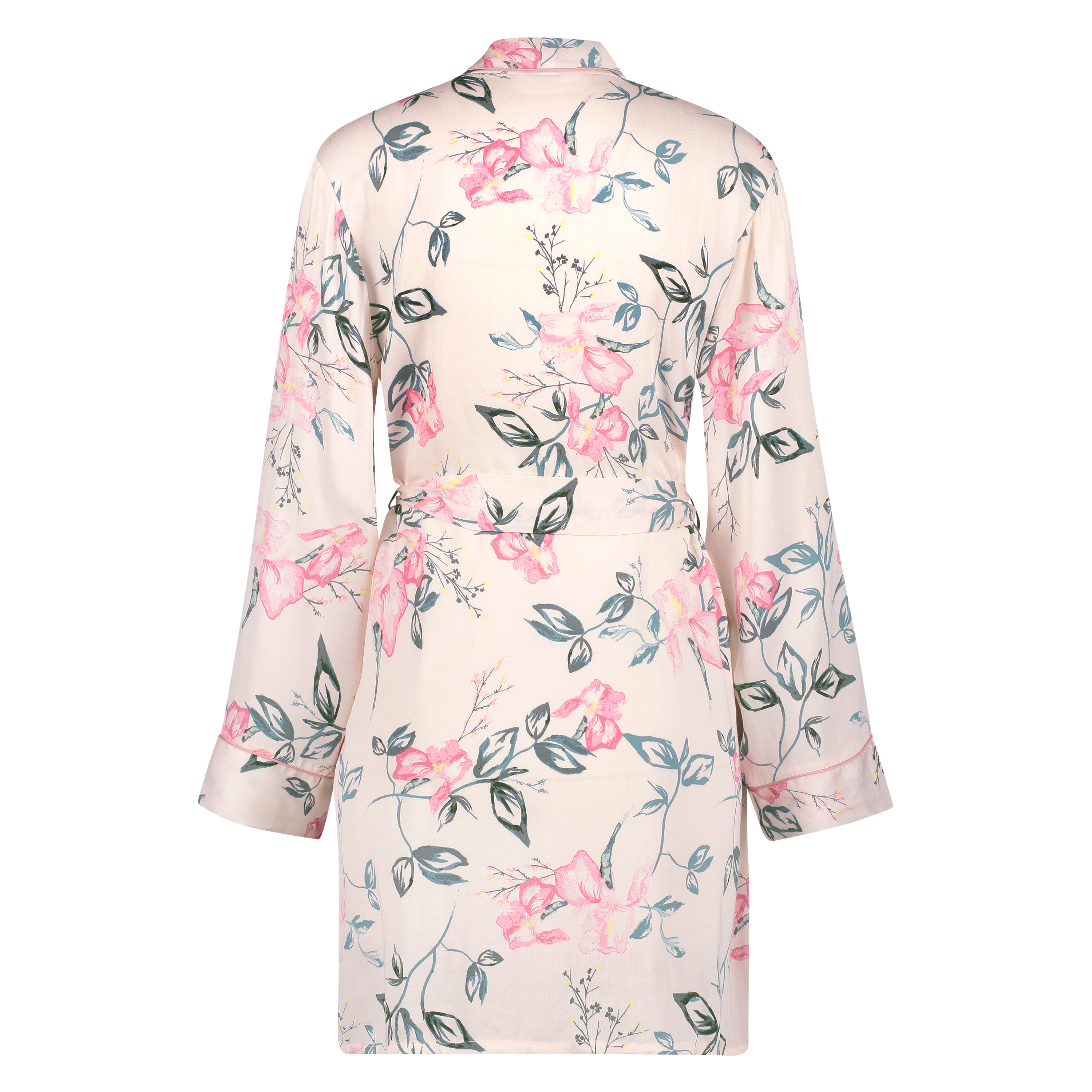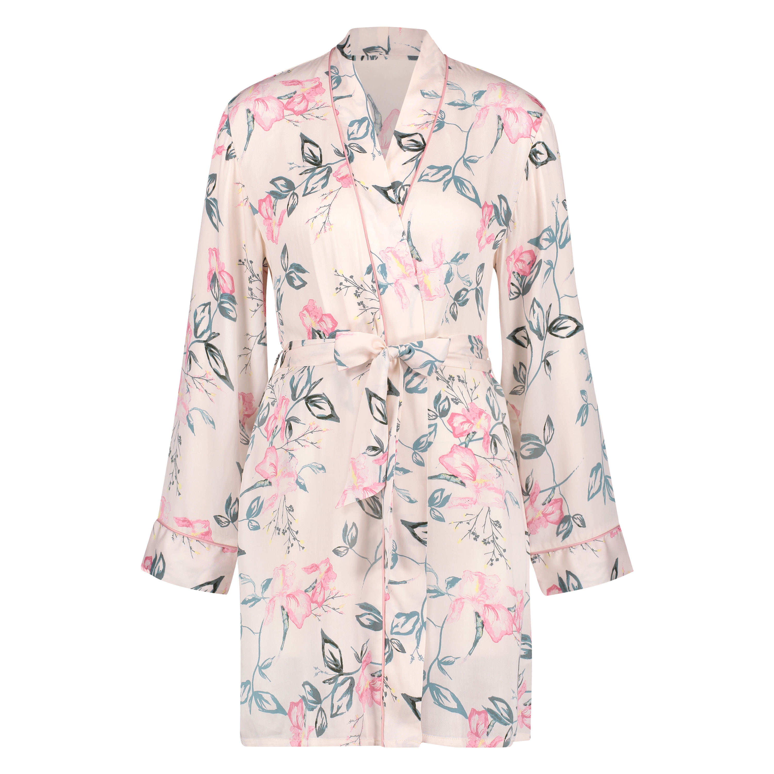 ¡Este kimono le da un toque jovial a tu estilo! El kimono está hecho de un tejido de gran caída y tiene un acabado de ribetes rosas.