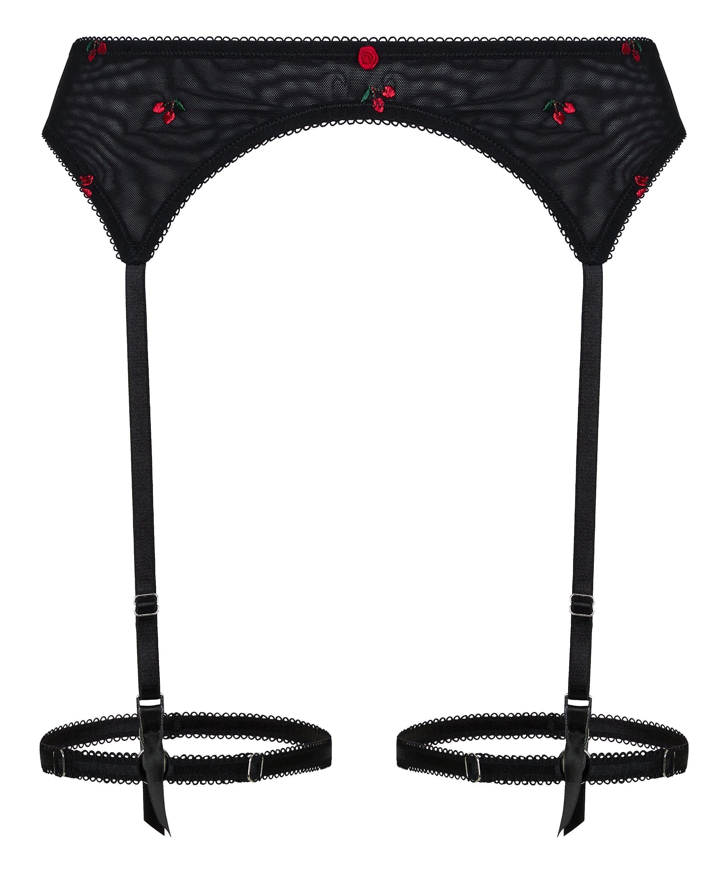 La dulzura se une a la seducción en este liguero, confeccionado en malla transparente para un acabado de lo más pícaro. Adornado con delicados bordados de cerezas, añade un toque divertido y femenino a tu look lencero. Las tiras ajustables garantizan un ajuste perfecto, y los suaves ribetes de satén realzan el diseño. Ideal para combinar con el sujetador y la brasileña a juego y lograr un look coordinado.