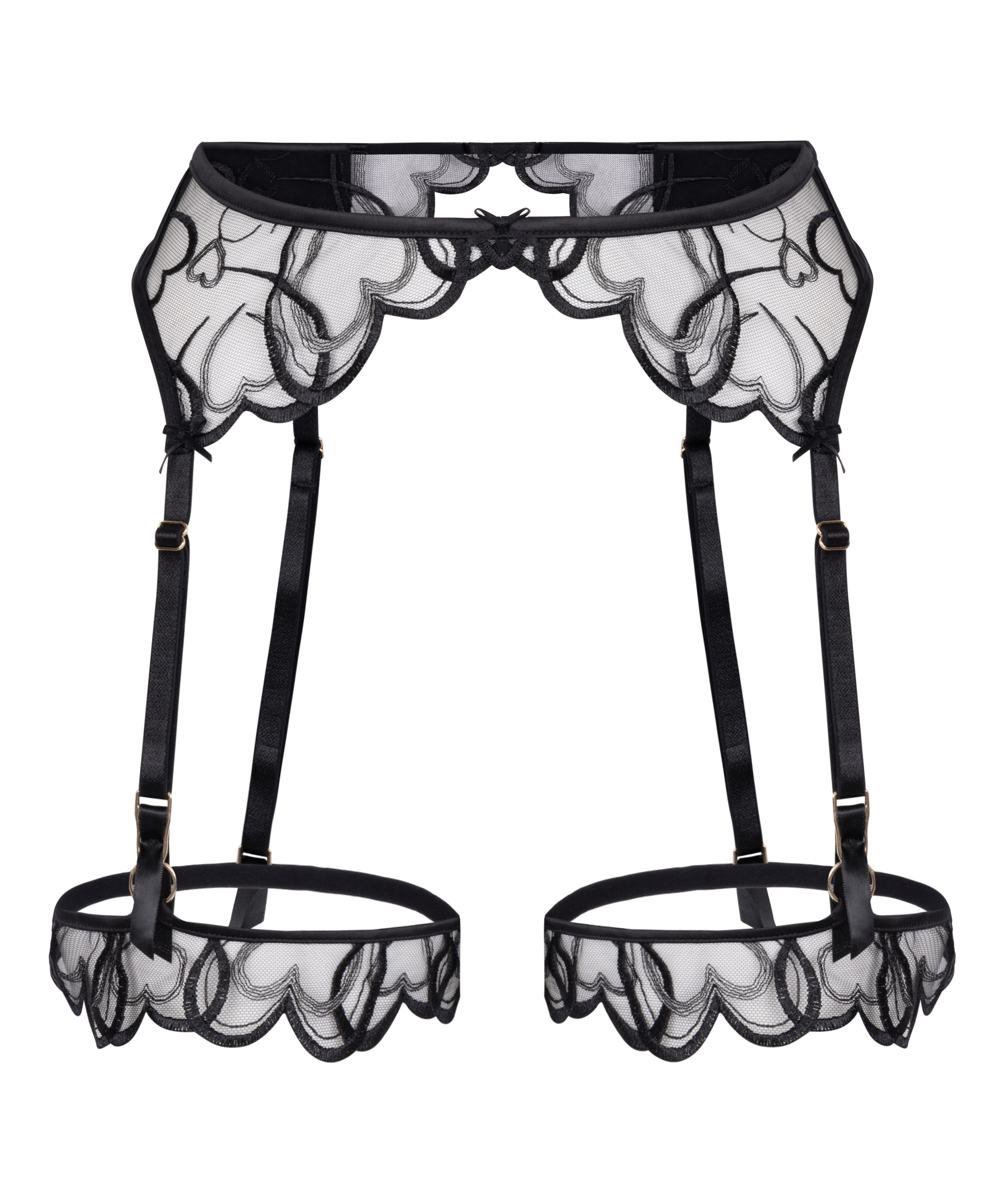 Añade un coqueto toque final a tu look de lencería con este romántico liguero, con delicados detalles de encaje en forma de corazón. Diseñado para asentarse cómodamente en la cintura, añade un toque juguetón pero elegante a cualquier conjunto. Las correas regulables permiten un ajuste perfecto con tus medias favoritas. ¡Ideal para combinar con el sujetador y la braguita a juego!