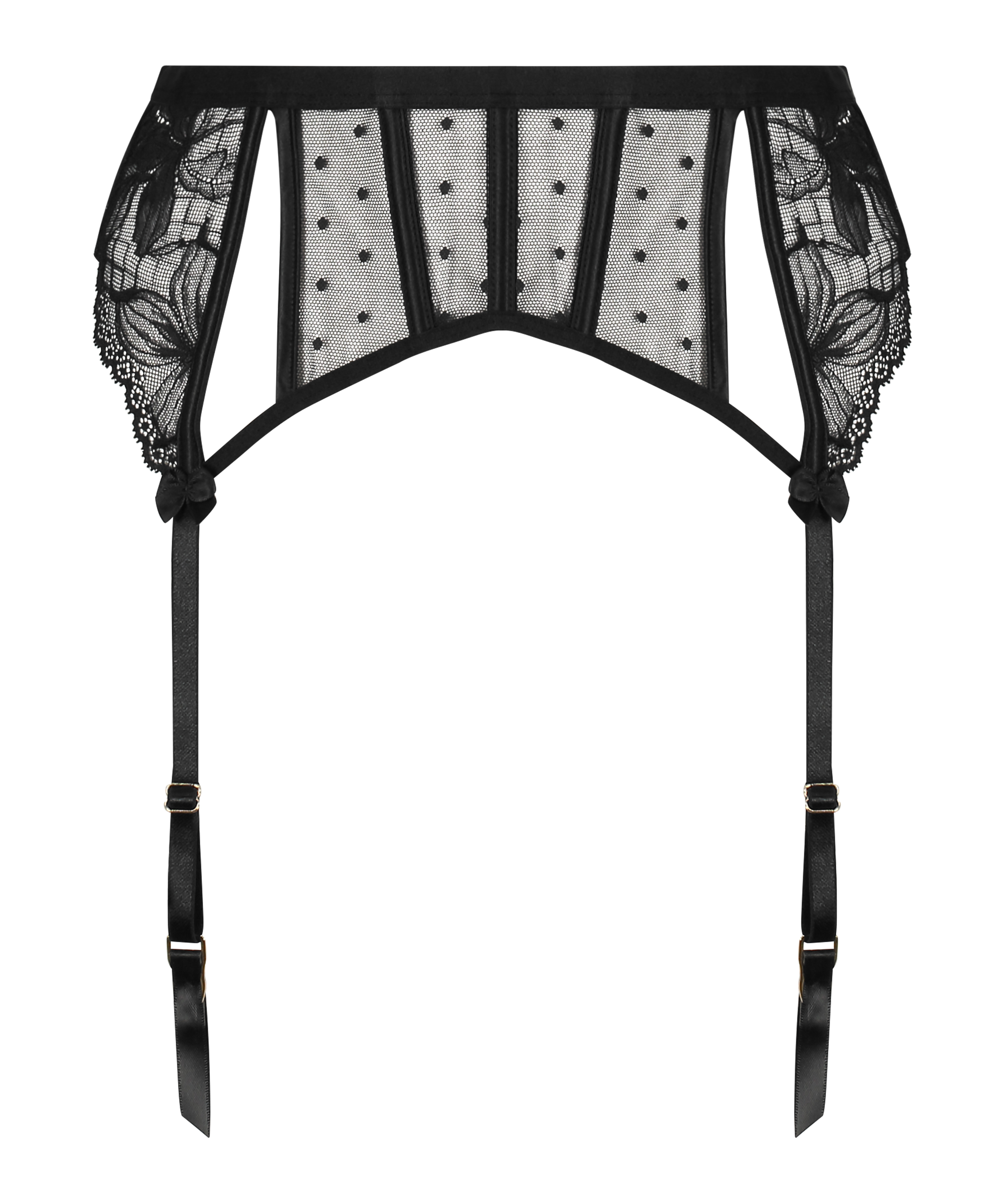 ¡Completa tu conjunto de lencería sexy con estos tirantes! Con un look semitransparente creado por los detalles de malla por toda la prenda y detalles de tiras en la espalda. ¡Combina con el set de Lulu! Forma parte de la Colección Private.