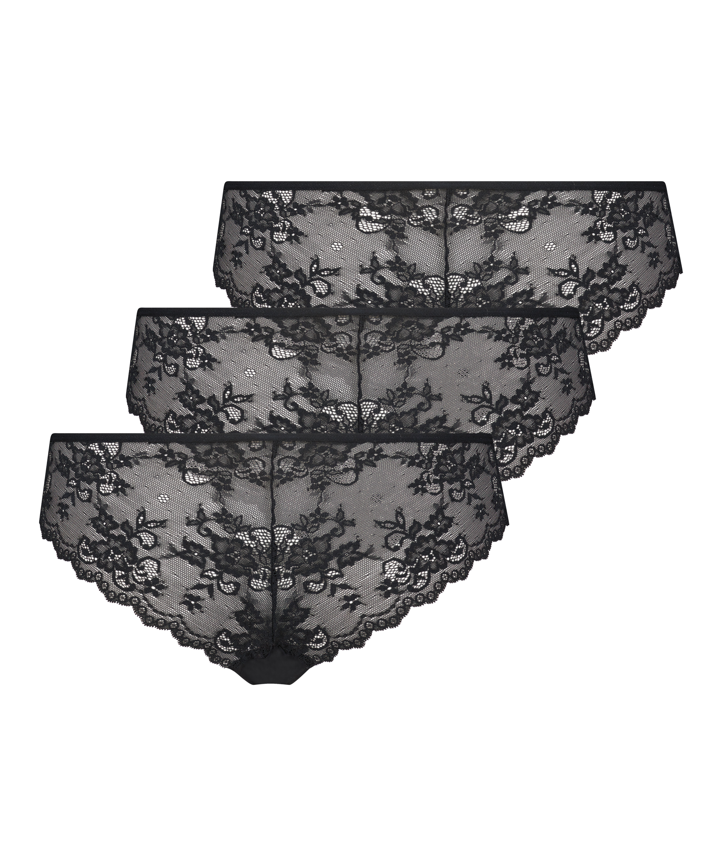 ¿Verdad que estas braguitas brasileñas son de lo más bonitas? Estas braguitas brasileñas tienen una parte trasera de encaje y vienen en un lote de 3, ¡muy práctico! Combínalas con tu sujetador favorito en el mismo color.