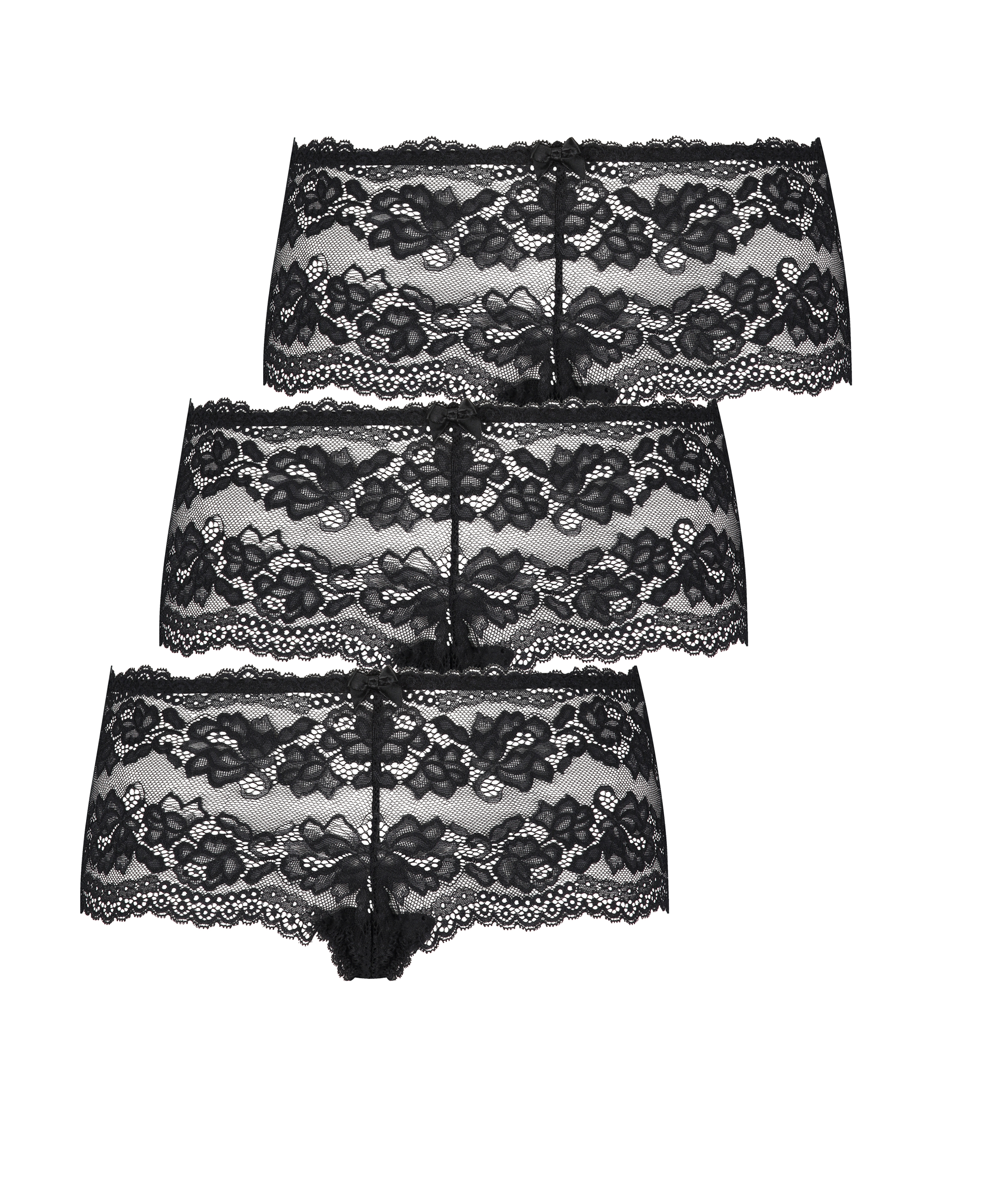 ¡Te sentirás sexi con estas braguitas tipo bóxer! Estas braguitas tipo bóxer tienen un acabado total de encaje y un pequeño lacito. Además, vienen en un práctico lote de 3. ¡Combínalas con un sujetador a juego!