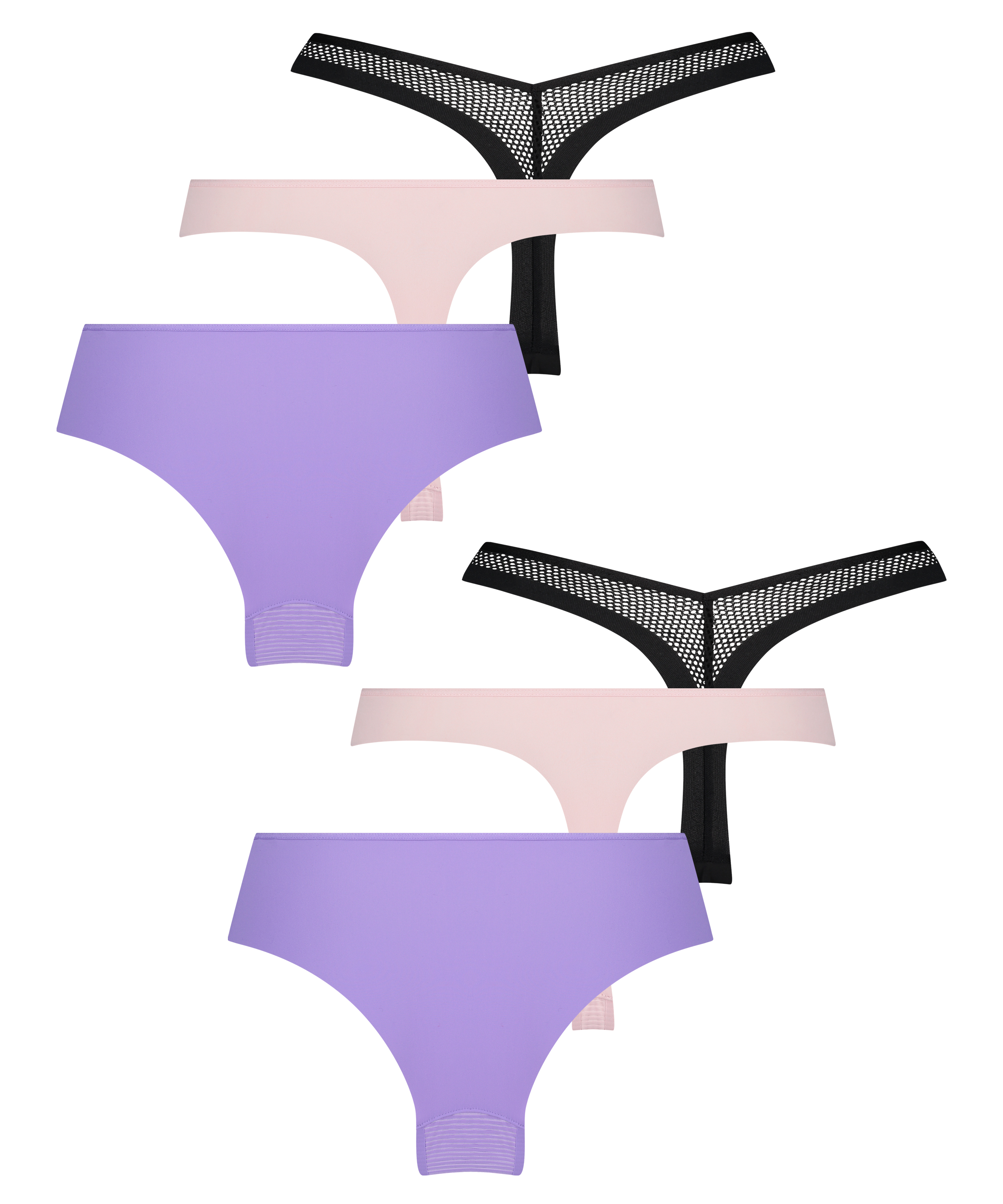 ¡Te presentamos nuestro pack de ropa interior invisible, compuesto por 6 piezas básicas! Diseñado sin costuras para usarse bajo tu ropa ajustada, este pack incluye 4 tangas y 2 brasileñas y garantiza versatilidad y comodidad para cada ocasión. Confeccionadas con la mayor discreción en mente, estas piezas son ideales para cada día. ¡Puedes combinarlas con tu sujetador favorito y comenzar el día con confianza!