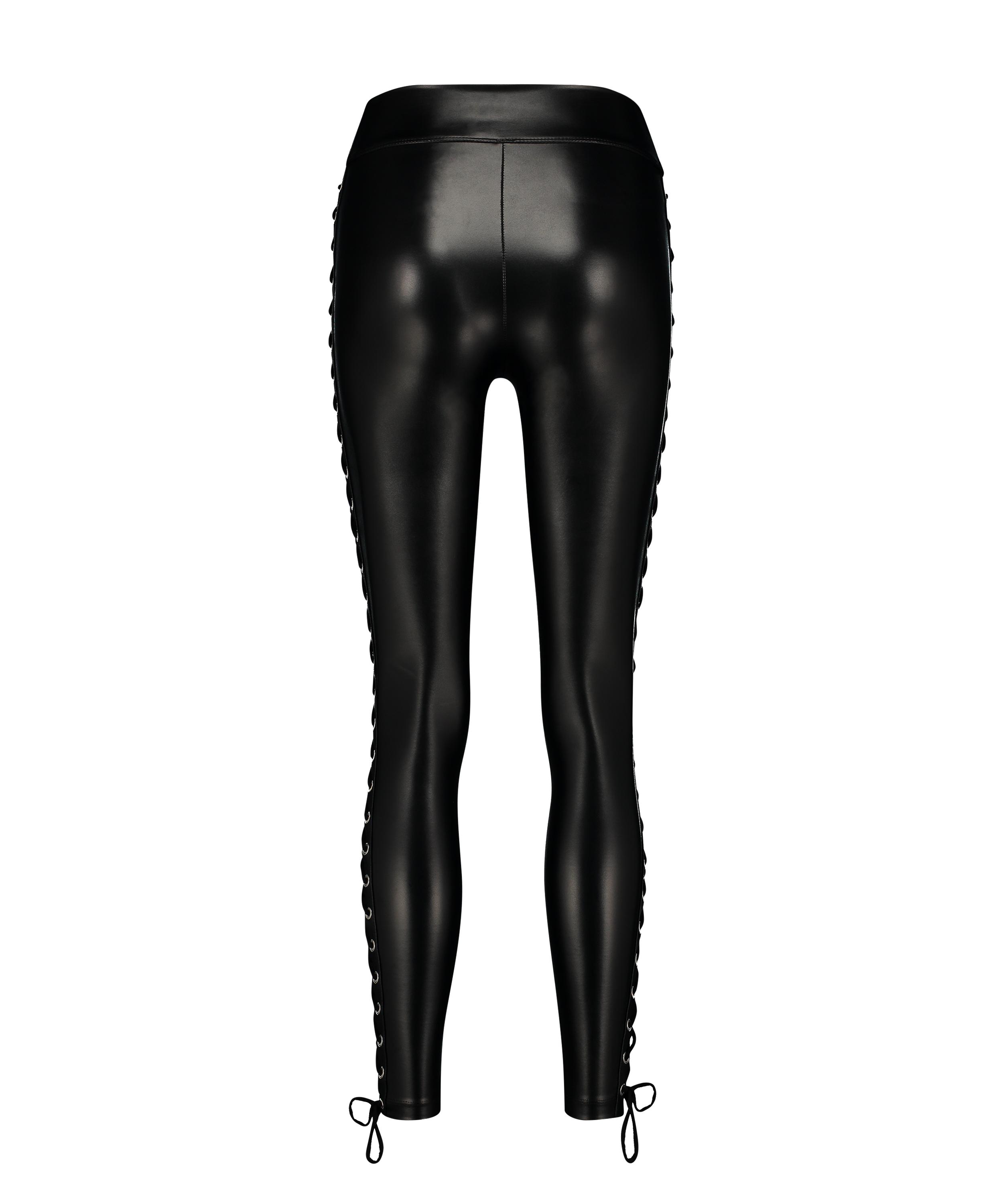 ¡Ponte sexi con estas preciosas mallas! Estas mallas están hechas de cuero artificial y tienen unos recortes en los laterales con detalles de encaje. ¡Combínalas con un sujetador a juego y unas braguitas de la colección Private!