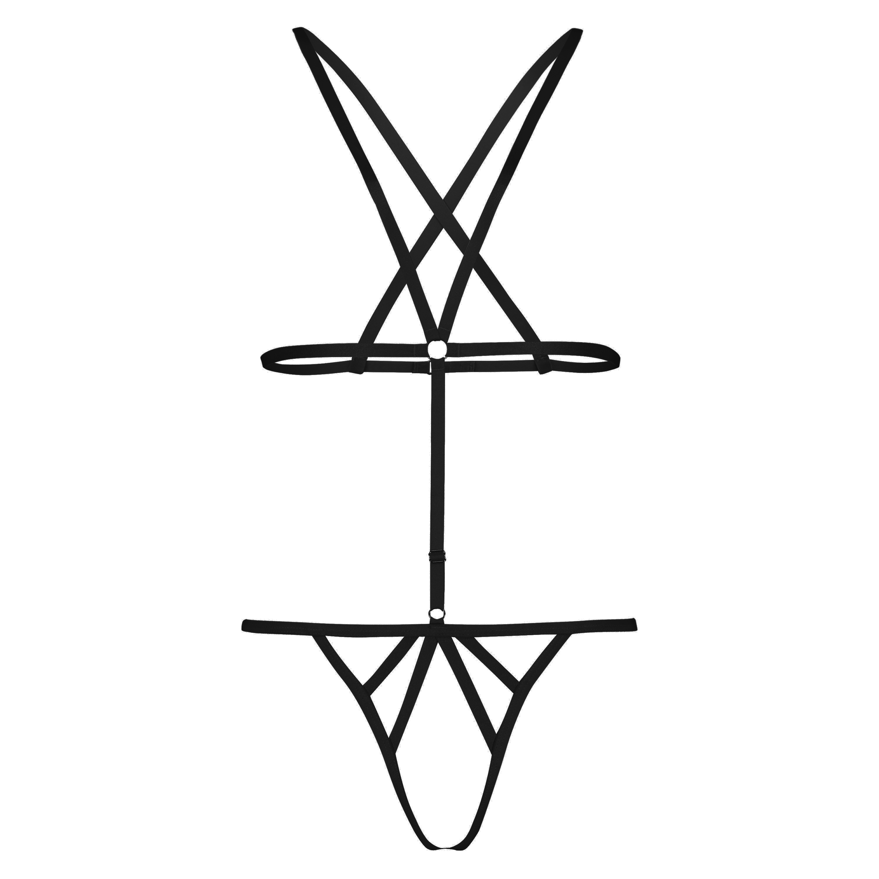 ¿Te atreves? Este atrevido mono con entrepierna abierta forma parte de nuestra colección Private. El cinturón sobre el vientre y el gancho posterior se pueden ajustar para que el mono siempre se ajuste correctamente al cuerpo.
