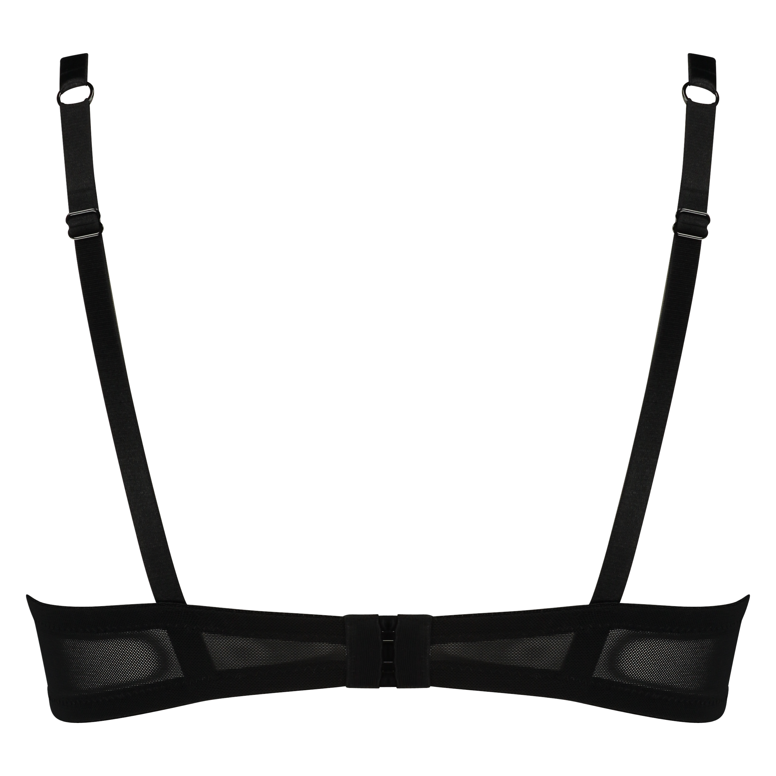 Elegant and classy: this non-padded underwired bra features semi-transparent black fabric with dots. There is a small bow between the cups.