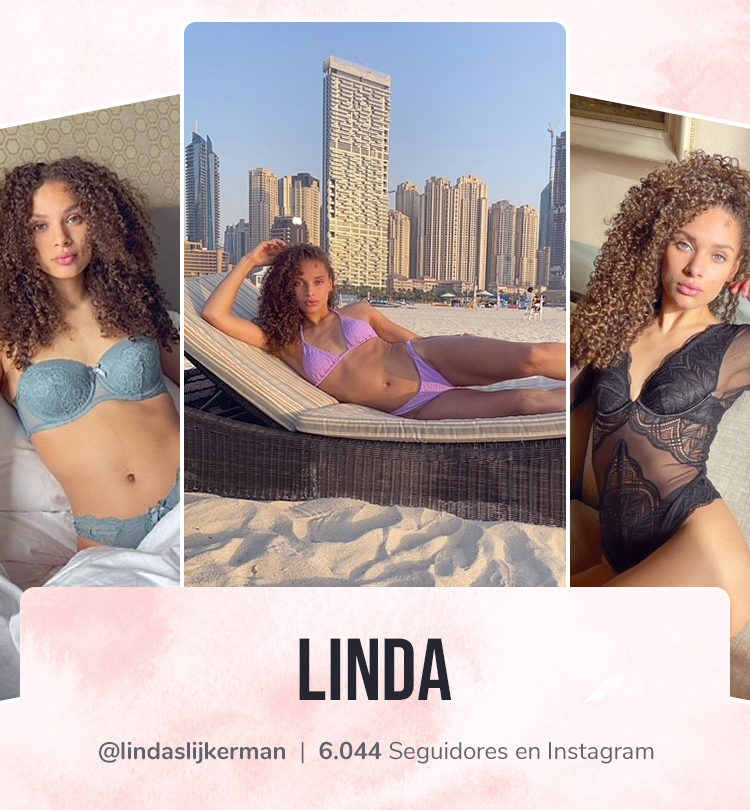 Quizá has tenido la suerte de ver a nuestra embajadora Linda deslumbrando en la pasarela el pasado mes de marzo. Cree que cada mujer es bella a su manera, una teoría que sin duda compartimos con ella. Sus prendas favoritas son de colores pastel: rosa, azul y amarillo.