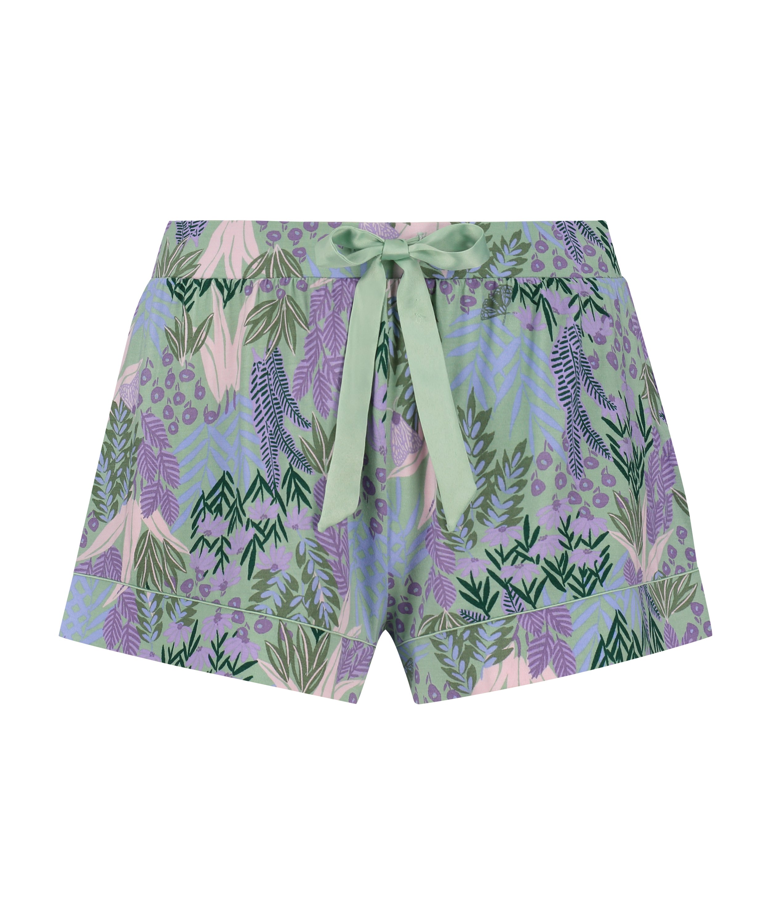 ¡Hermoso pantalón corto de pijama para zambullirse en la cama! Está hecho de un material holgado y, por tanto, su porte es agradable. Cuenta con un precioso acabado de un borde de encaje en la parte inferior y un lazo satinado en la parte delantera.