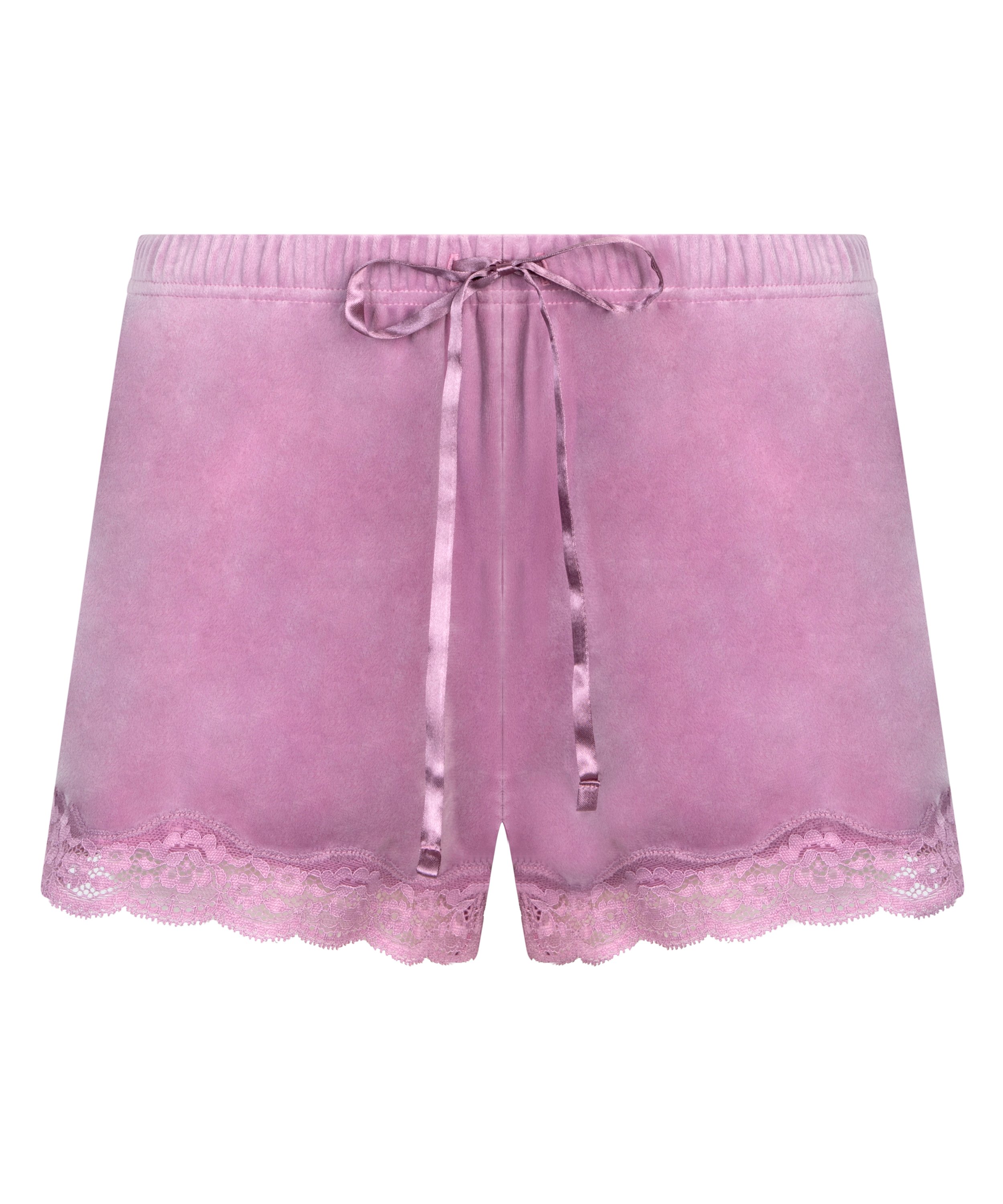 ¡Siéntete femenina y de lo más sexi con este suave pantalón corto! El pantalón corto está hecho de un tejido de terciopelo y tiene un acabado de encaje. Combínalo con los artículos a juego.
