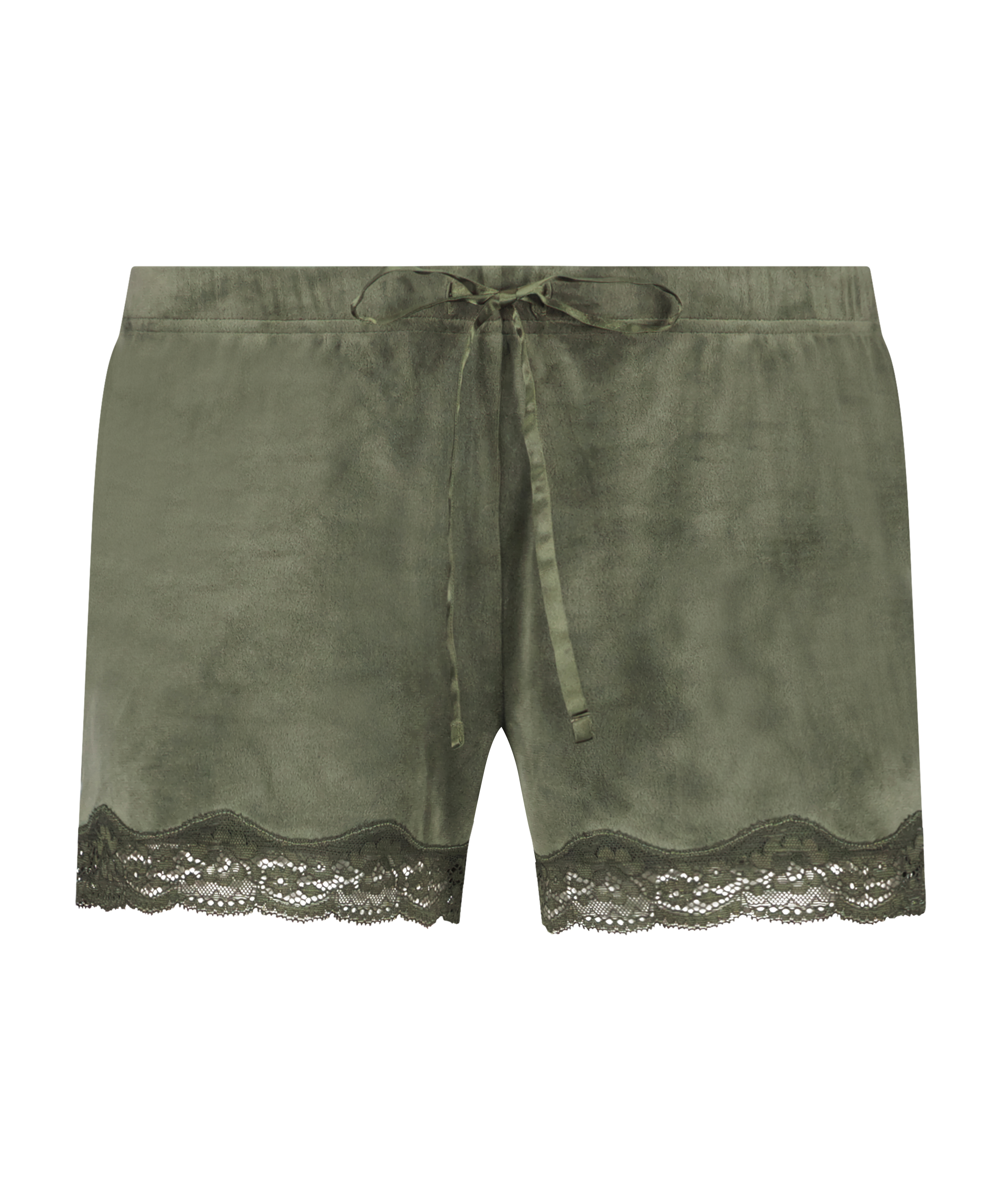 ¡Siéntete femenina y de lo más sexi con este suave pantalón corto! El pantalón corto está hecho de un tejido de terciopelo y tiene un acabado de encaje. Combínalo con los artículos a juego.