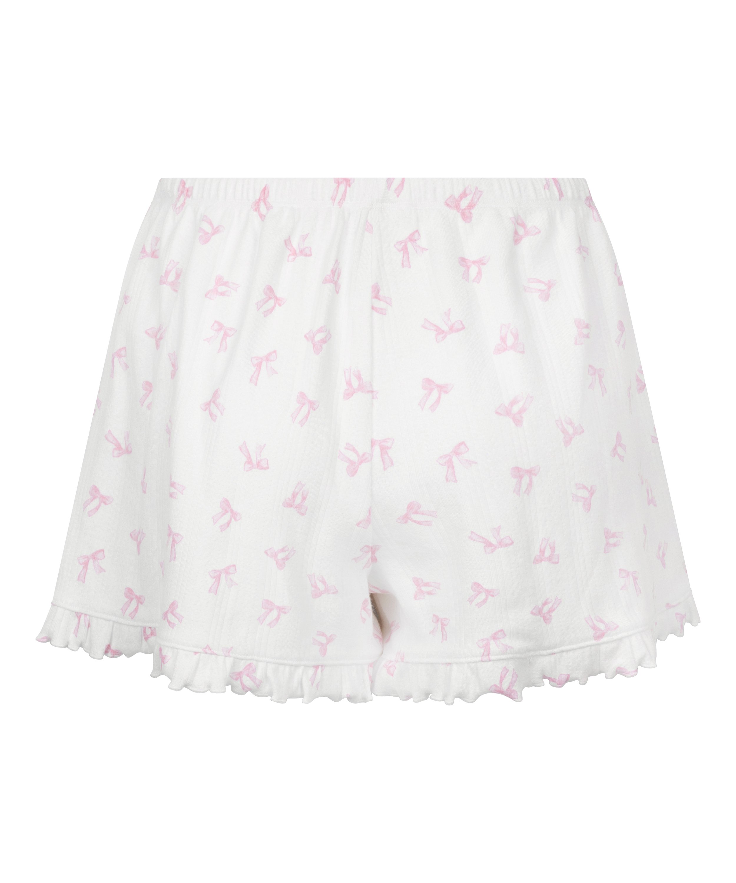 Añade un toque de delicadeza a tu ropa para dormir con nuestro pantalón corto en pointelle. Confeccionado en tejido pointelle, este pantalón corto presenta un estampado texturizado que resulta tan agradable al tacto como a la vista. Un divertido volante añade un toque coqueto y femenino, mientras que el lazo en el centro completa el look. ¡Combínalo con un top de pijama Jacket a juego para formar tu conjunto ideal!