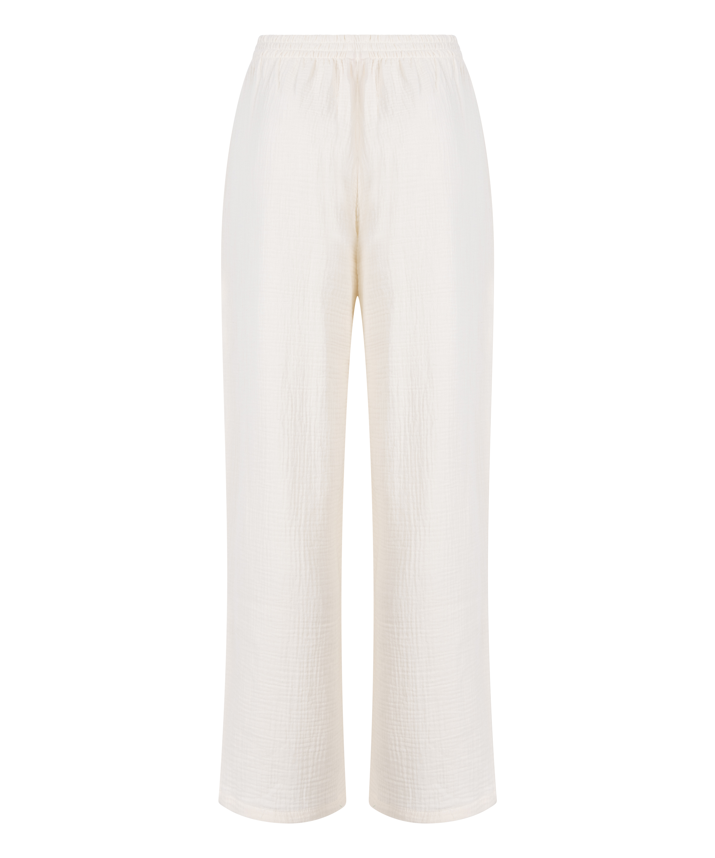 Descubre el estilo y la comodidad sin esfuerzo con nuestro pantalón de pijama. Este pantalón está confeccionado en un tejido suave, por lo que es ligero e ideal para esos días de relax. Gracias a su cintura elástica garantiza un ajuste flexible y cómodo, mientras que los bolsillos laterales añaden un toque práctico.