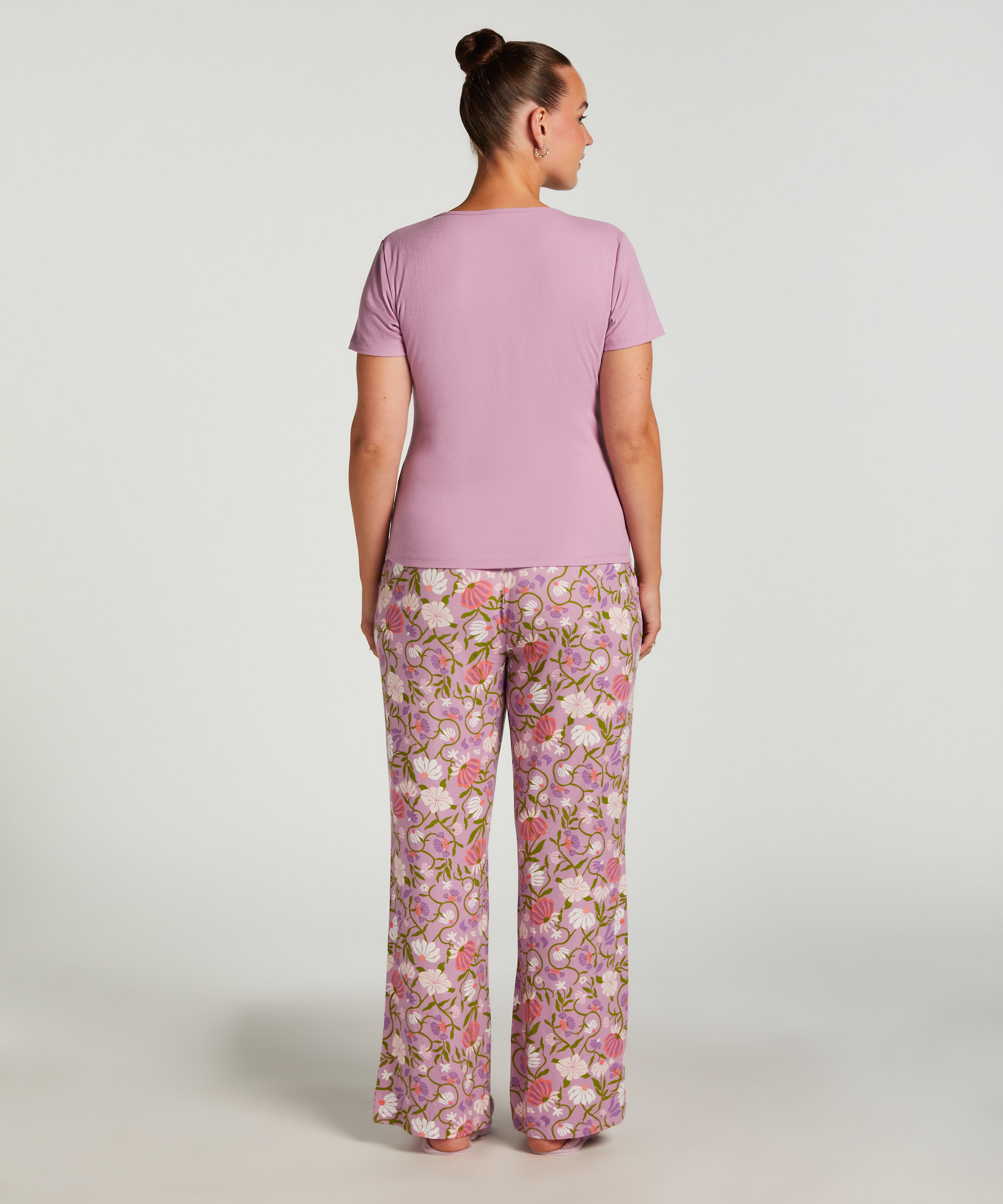 Con estos cómodos pantalones de pijama, ¡mejor nos quedamos en la cama! El pantalón cuenta con un estampado all-over y con un lazo en la parte delantera de acabado.