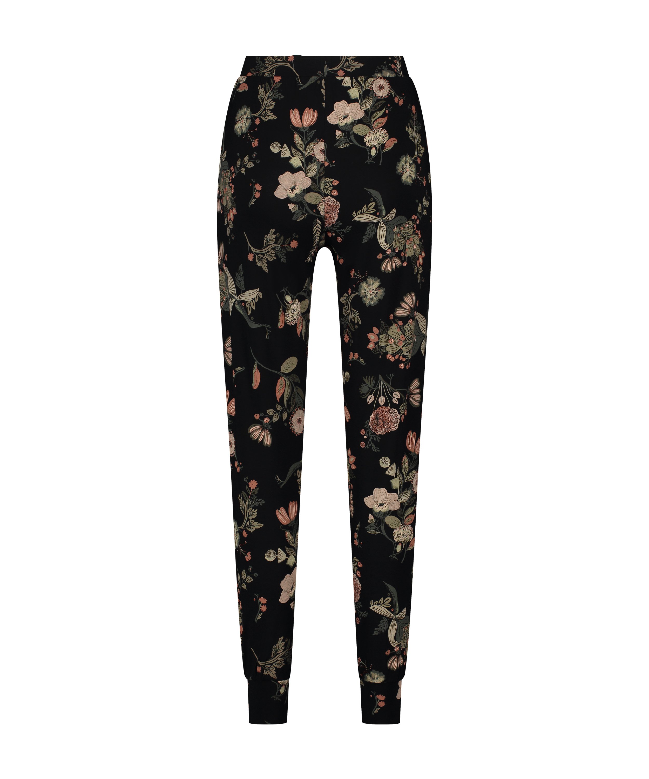 Con estos cómodos pantalones de pijama, ¡mejor nos quedamos en la cama! El pantalón cuenta con un estampado all-over y con un lazo en la parte delantera de acabado.