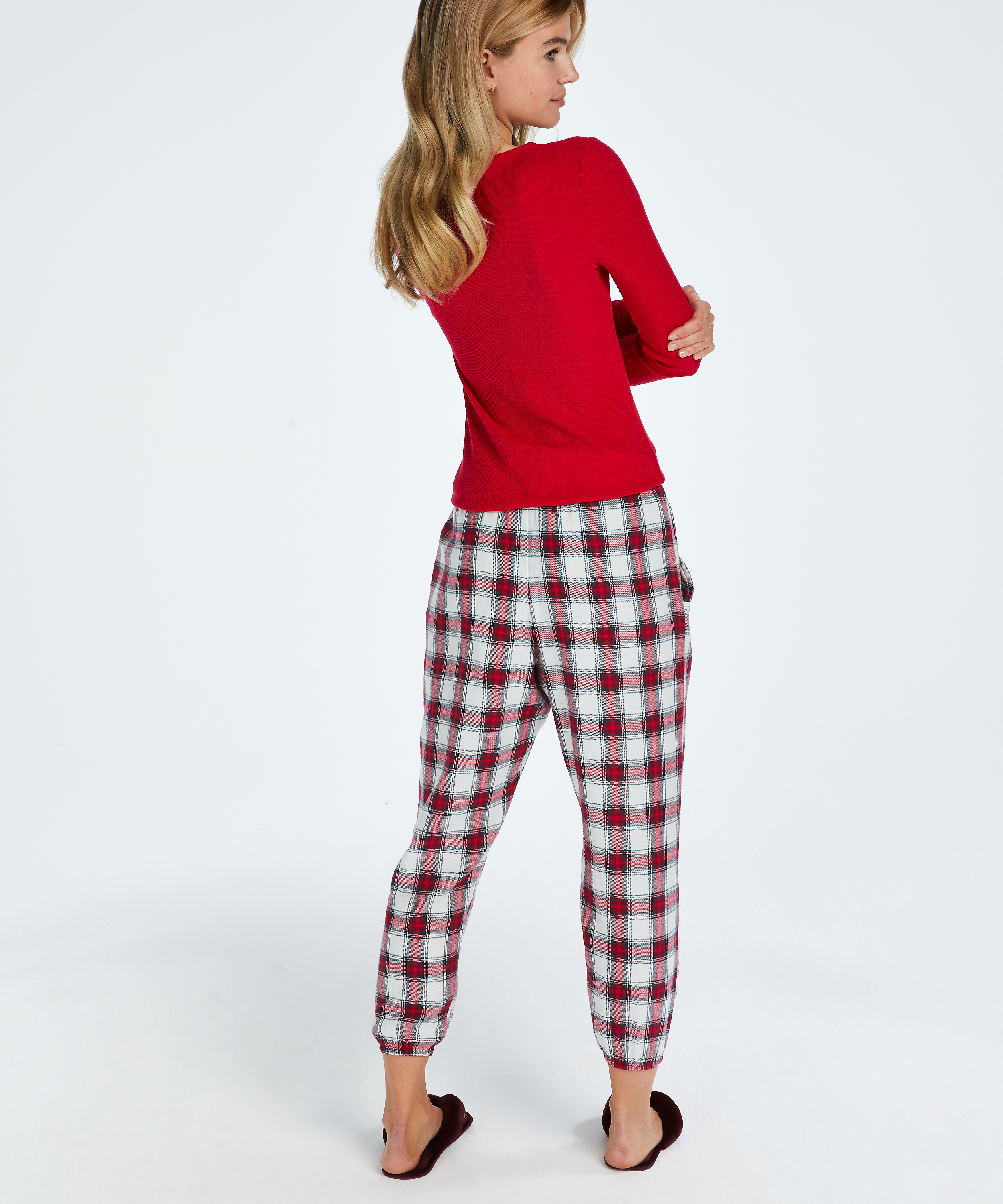 ¡Siente la comodidad en este pantalón de pijama! El pantalón tiene un precioso estampado de cuadros y cintas elásticas en la parte inferior de las piernas para que se ajuste perfectamente a tu cuerpo. ¡Combínalo con un top a juego para el conjunto complet. Este pantalón es 7,5 centímetros más corto que el modelo normal y tiene un ajuste pequeño. Gracias a esto es perfecto para mujeres que miden menos de 1,60m.
