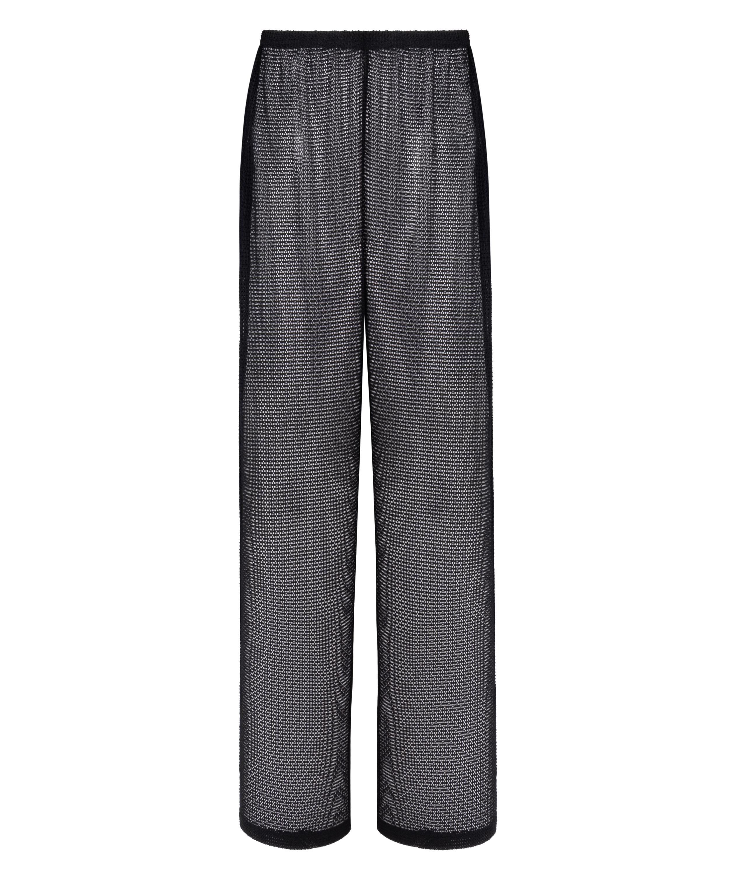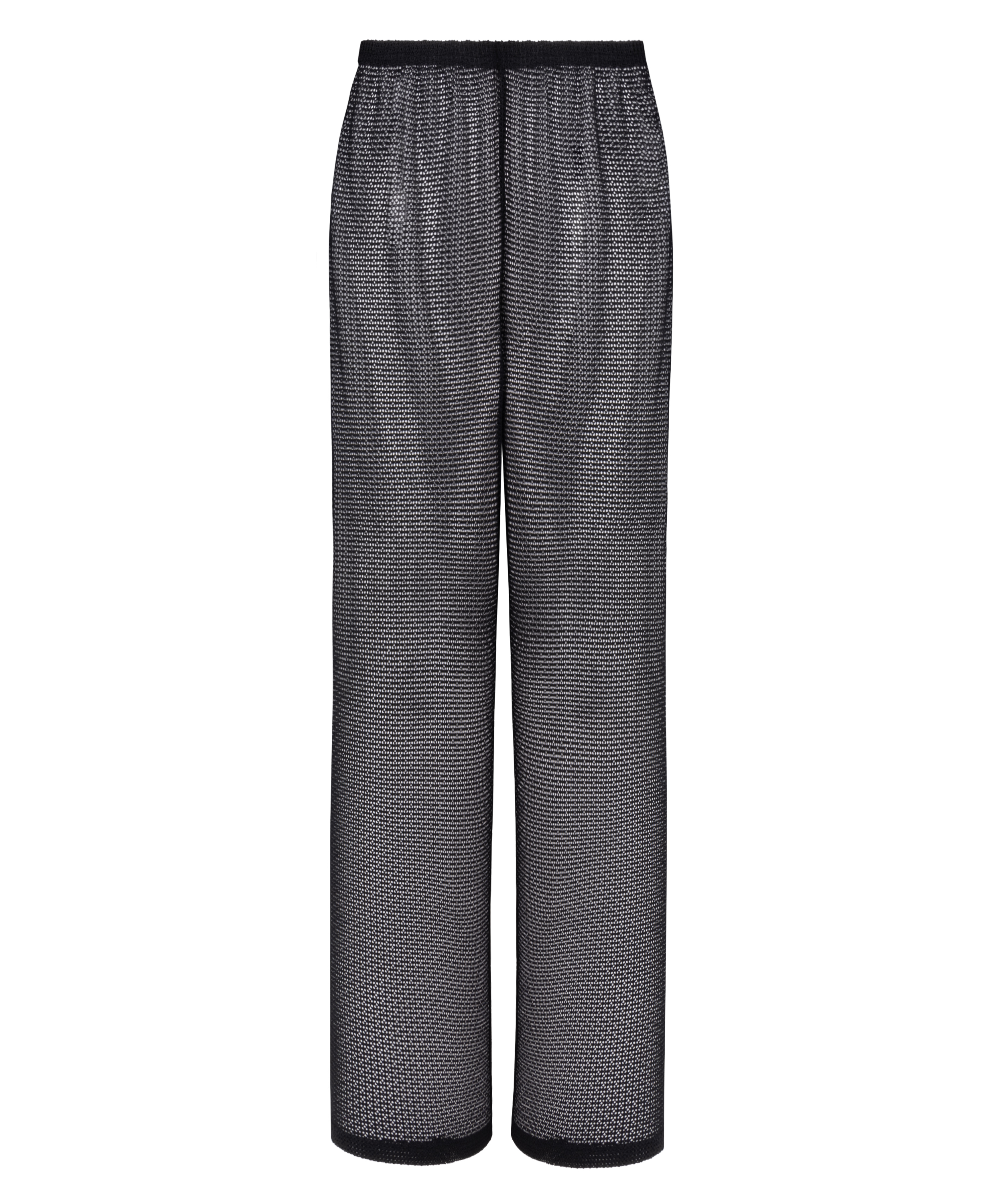 Luce un estilo desenfadado con este pantalón playero de punto. Su diseño transparente ofrece una sensación de elegancia y ligereza, ideal para llevar sobre el bañador. Al ser tan ligero y cómodo, es la prenda definitiva para un look playero relajado pero con estilo.