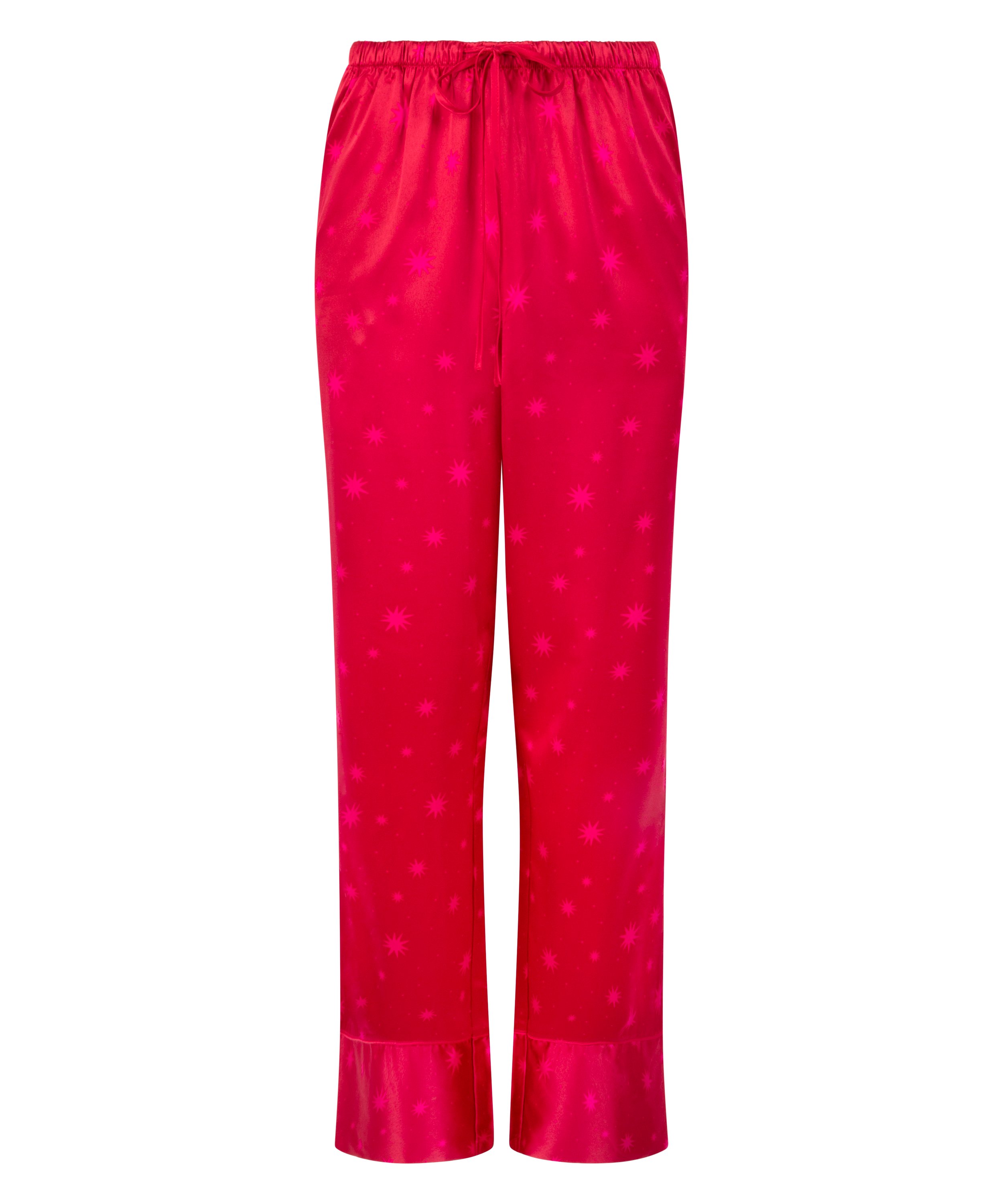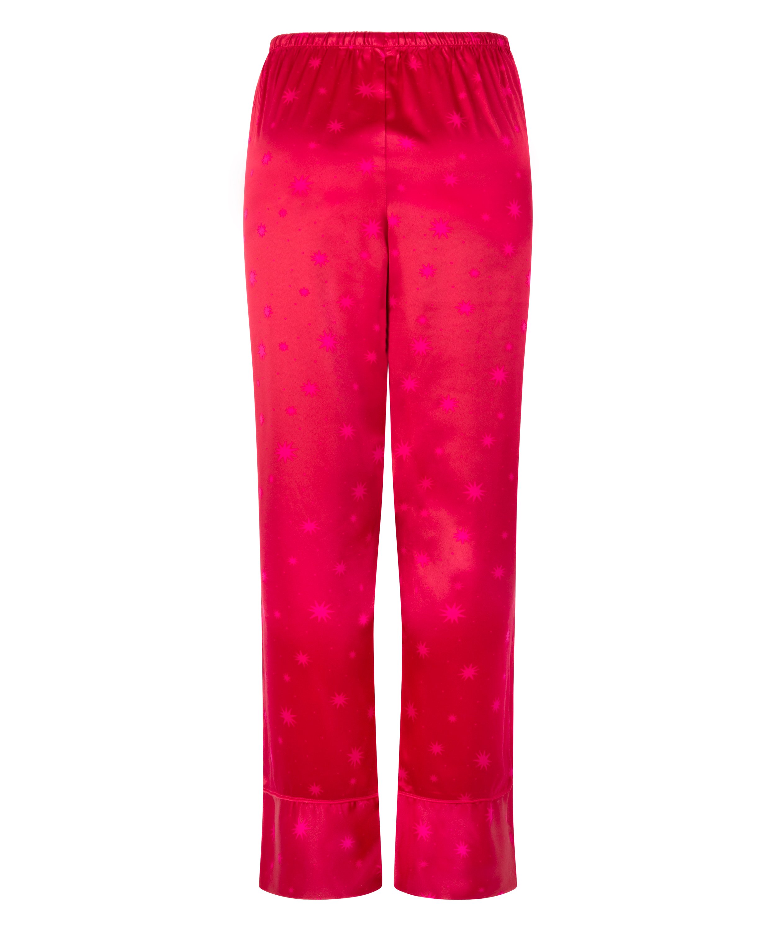 ¡Qué bonitos son estos pantalones! Son de raso y tienen un borde elástico. Combínalo con otras prendas a juego para completar el look.