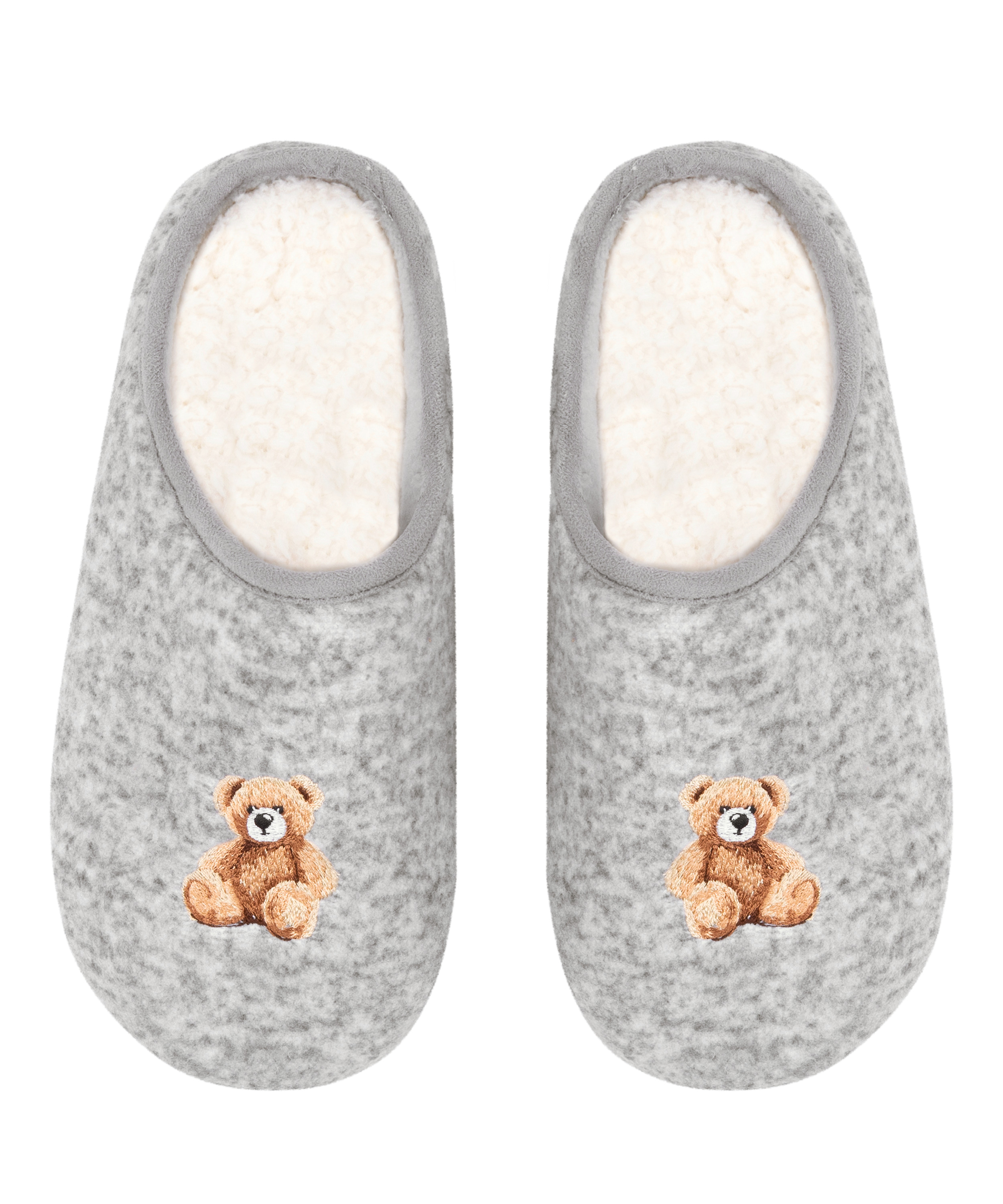 Envuelve tus pies en calidez y fantasía con estas suaves zapatillas mules de vellón, diseñadas para días acogedores y noches relajadas. Cada zapatilla lleva un adorable oso bordado en la parte delantera, un detalle encantador que añade personalidad a tus prendas de descanso. Confeccionadas en felpa, estos mules ofrecen un tacto suave y un confort aislante, mientras que su diseño destalonado hace que sean fáciles de poner y quitar.