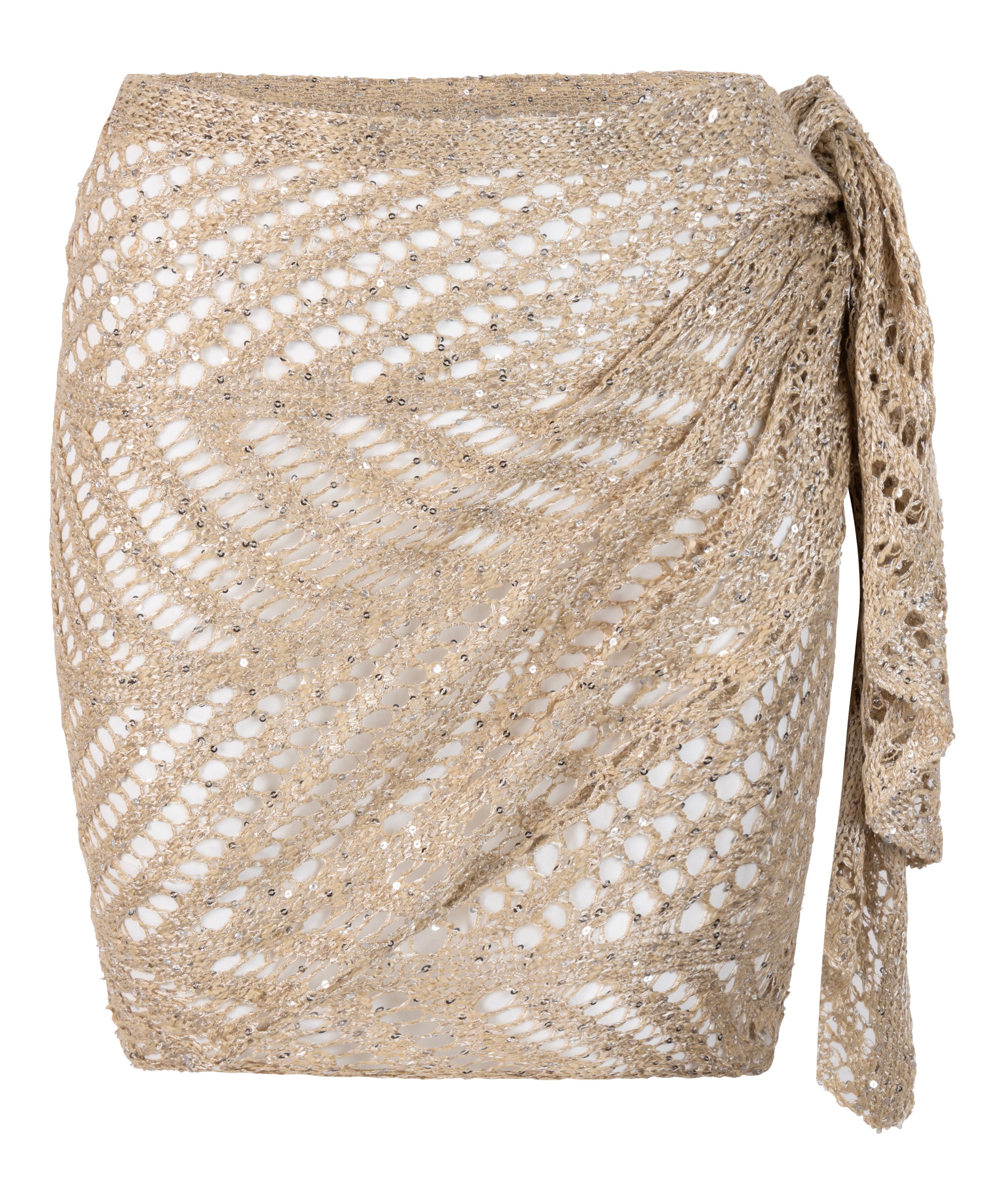 Añade un toque de glamour a tu vestuario de playa con este pareo. Este pareo se ciñe al cuerpo sin esfuerzo, ofreciendo un ajuste relajado perfecto para descansar junto a la piscina o pasear por la orilla.