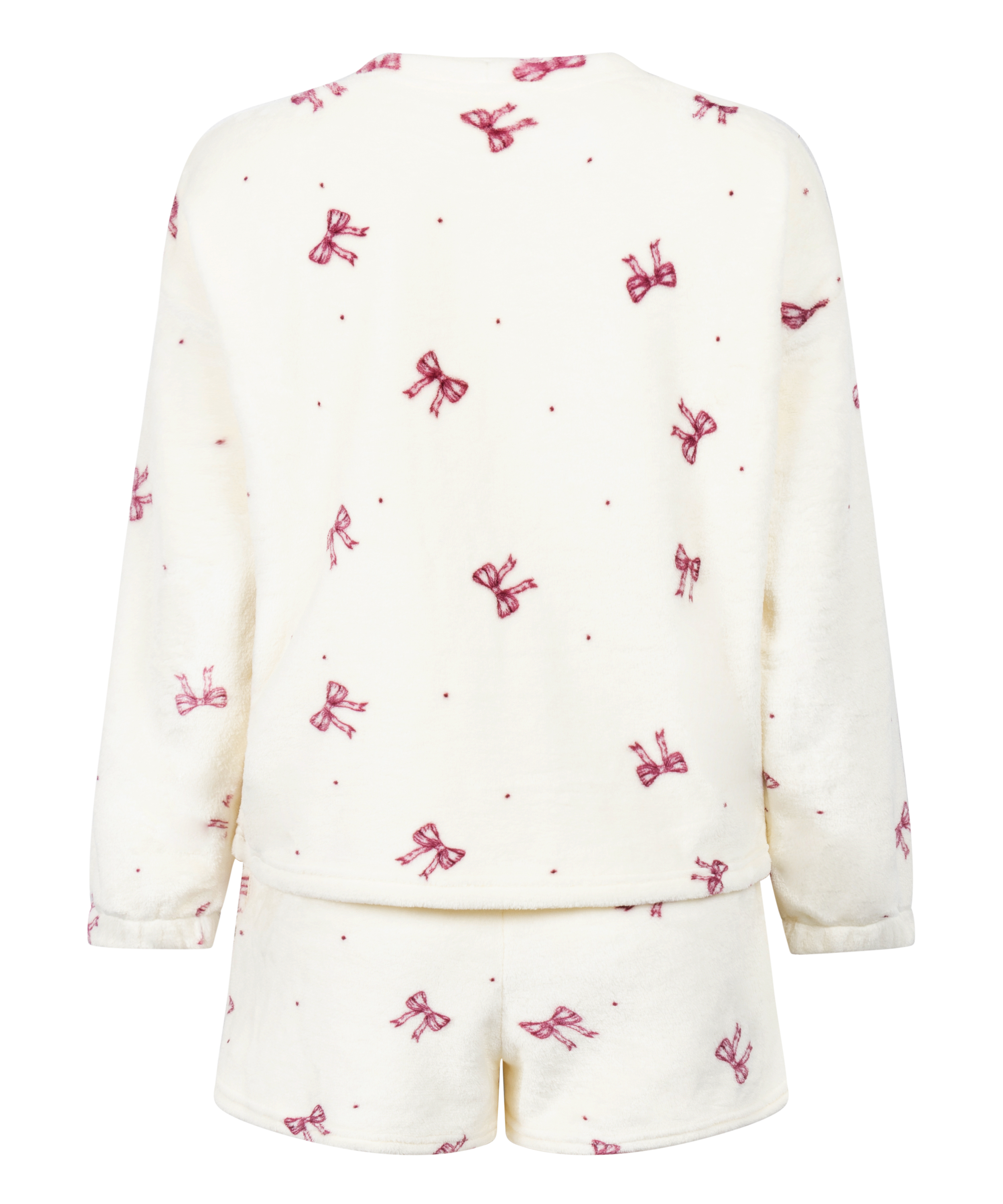 Prepárate para descansar con la máxima comodidad con este conjunto de pijama de franela polar, que incluye un jersey de manga larga y short a juego. Fabricado con un tejido polar ultrasuave y afelpado, este conjunto está diseñado para mantenerte caliente y disfrutar de la comodidad sin sobrecalentarte. Su corte relajado y suave elasticidad lo hacen perfecto para las mañanas perezosas, las noches de cine o simplemente para relajarse con estilo.