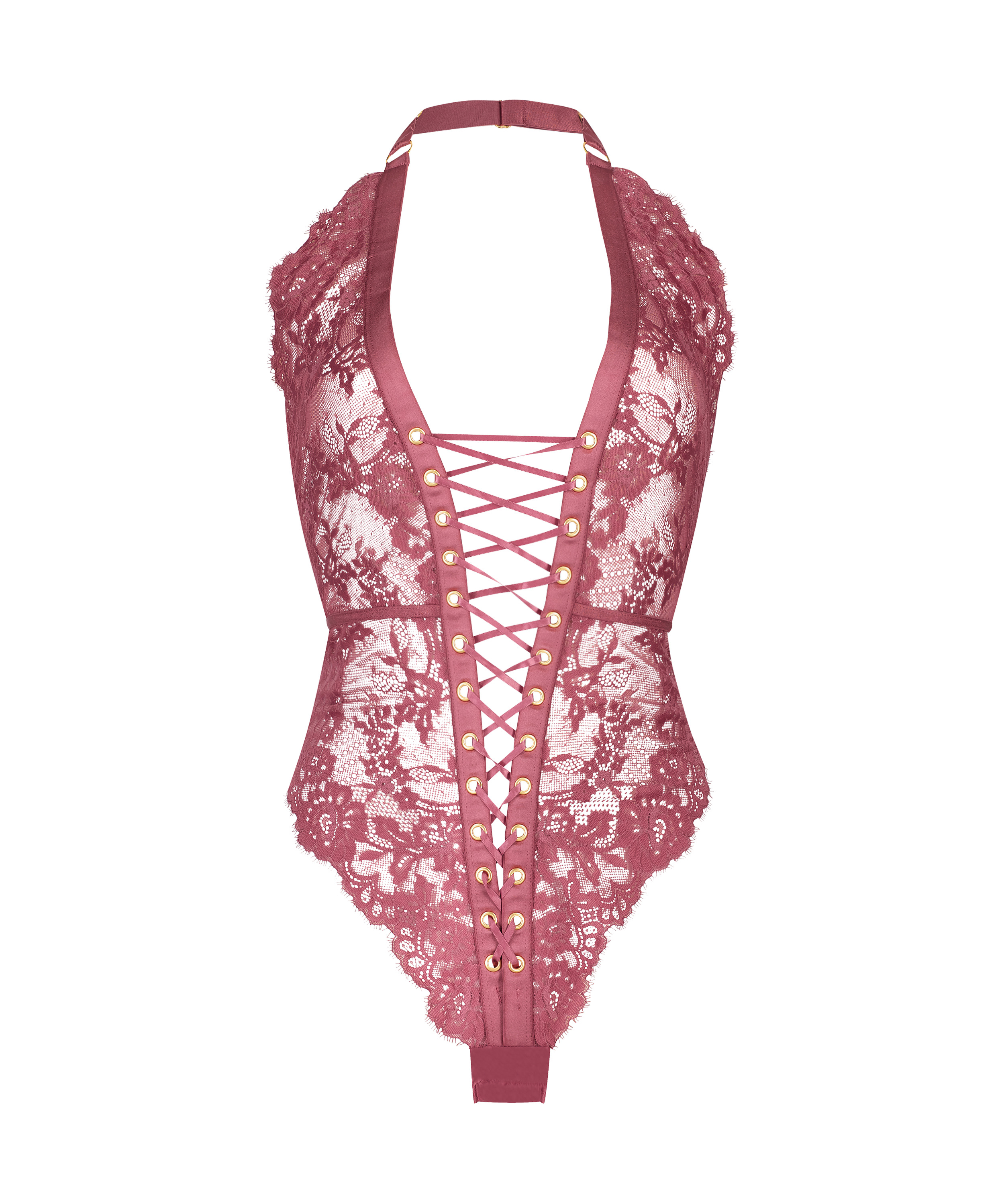 ¡Siéntete irresistible en este bodi! Tiene un escote en pico muy profundo cubierto con tiras. Todo el bodi es de encaje. ¡Este bodi es de nuestra colección Private!