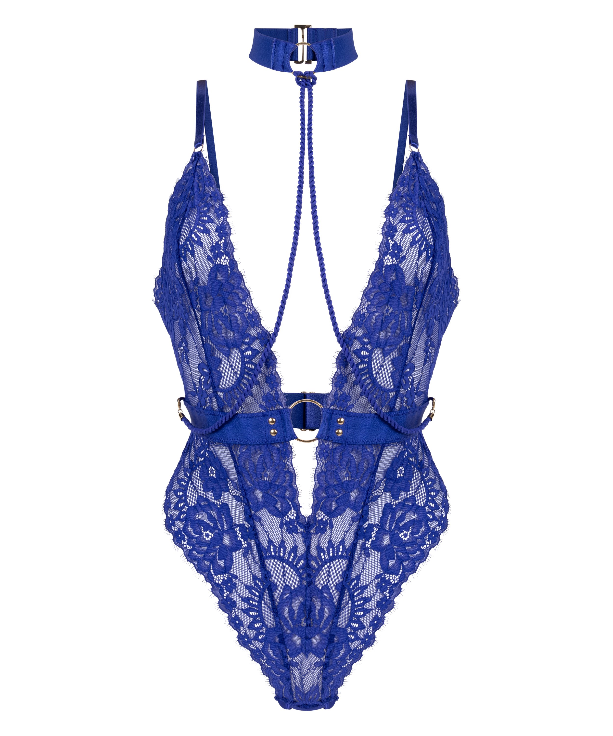 ¡Siéntete seductora en este body de encaje! Tiene una gargantilla con símil de cuero y está terminada con un cordón elástico que está torcido. ¡La parte posterior queda bastante abierta y tiene un corte desinhibido y supersexi! Parte de la emocionante colección Private.