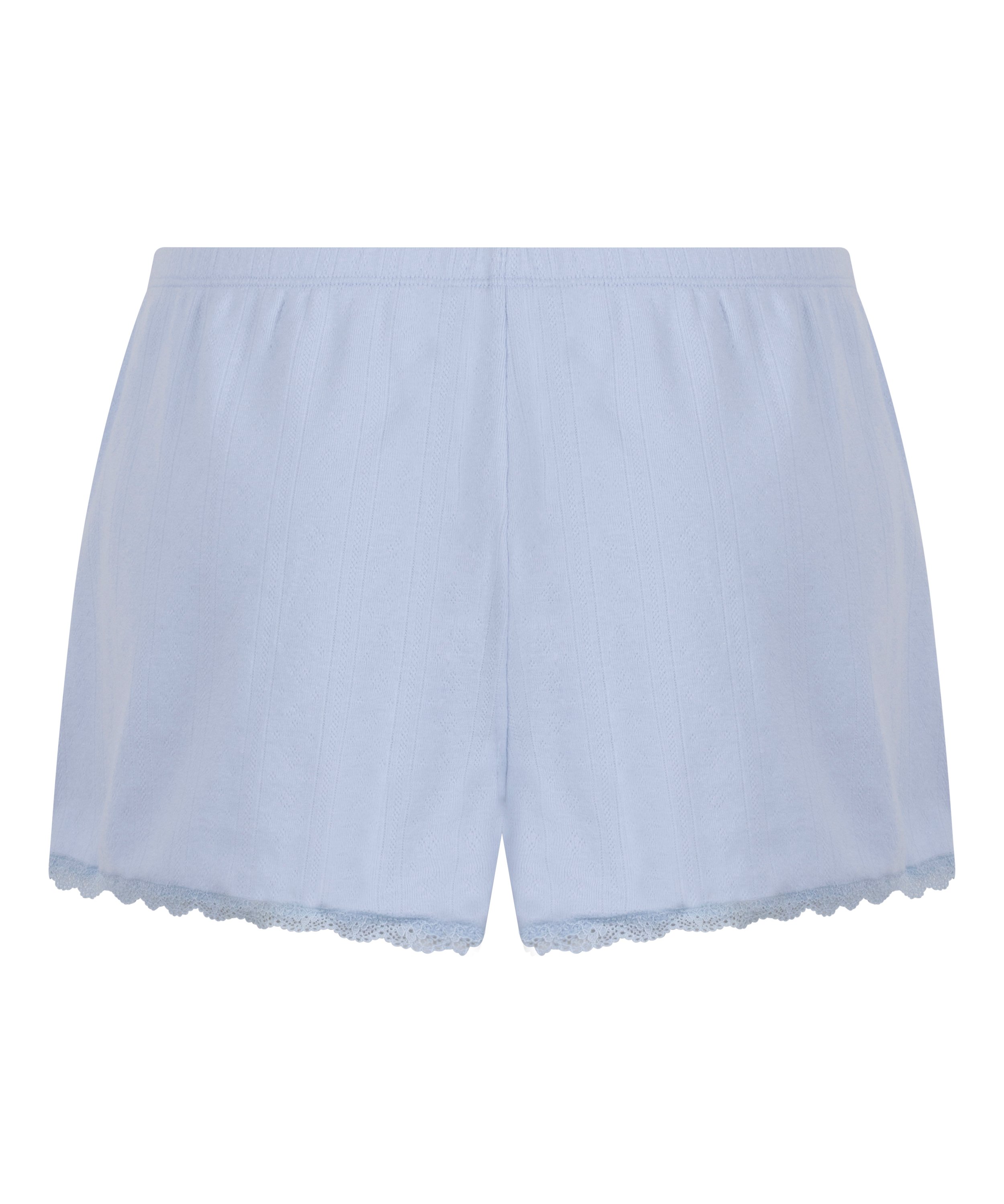 Disfruta de la comodidad con todo el estilo con nuestro short. Este short está confeccionado en suave tejido pointelle y presenta un patrón texturizado que aporta un toque a tu ropa de estar en casa. Los detalles de encaje realzan la prenda, mientras la cintura elástica garantiza un ajuste seguro y cómodo.
