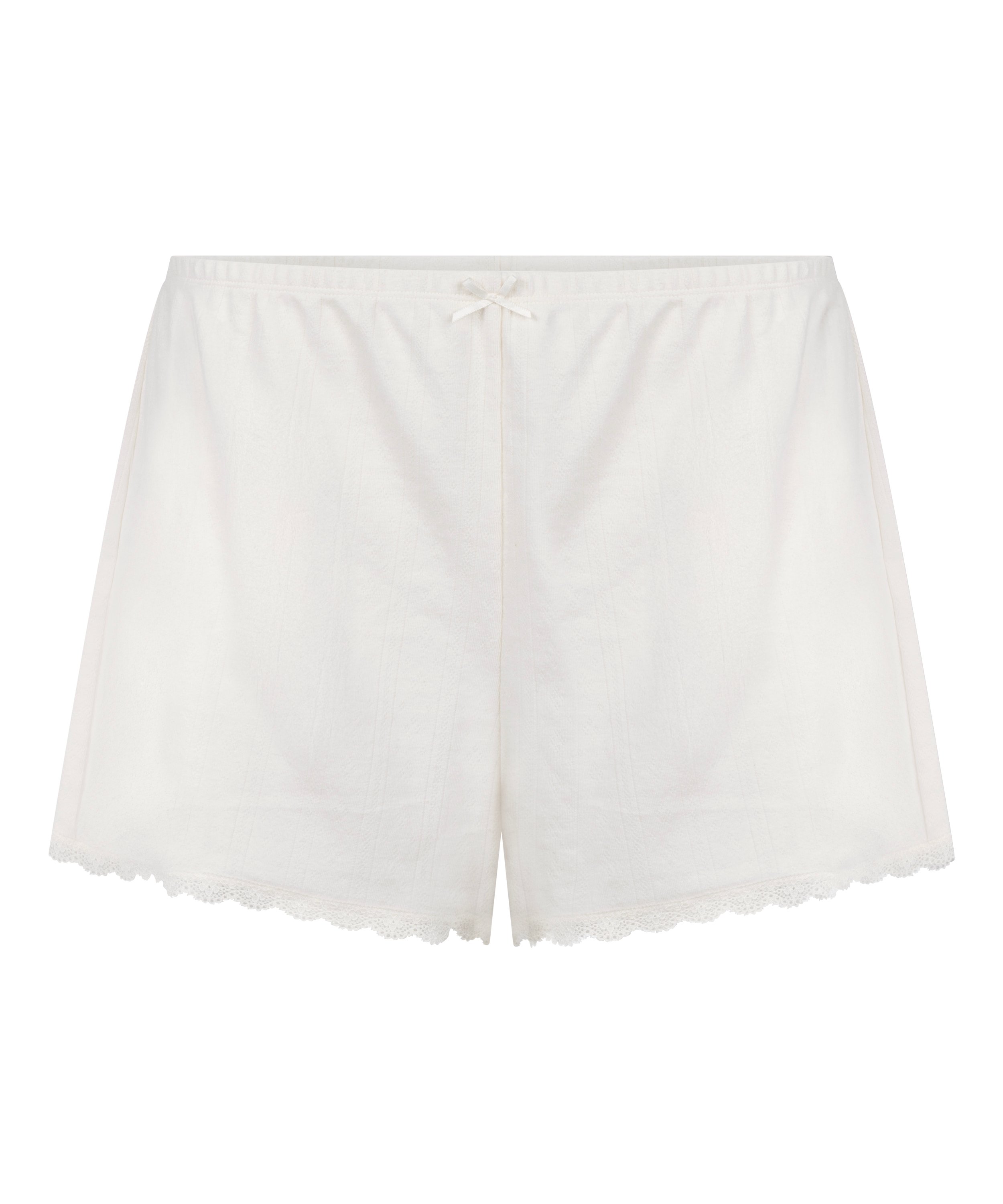 Disfruta de la comodidad con todo el estilo con nuestro short. Este short está confeccionado en suave tejido pointelle y presenta un patrón texturizado que aporta un toque a tu ropa de estar en casa. Los detalles de encaje realzan la prenda, mientras la cintura elástica garantiza un ajuste seguro y cómodo.