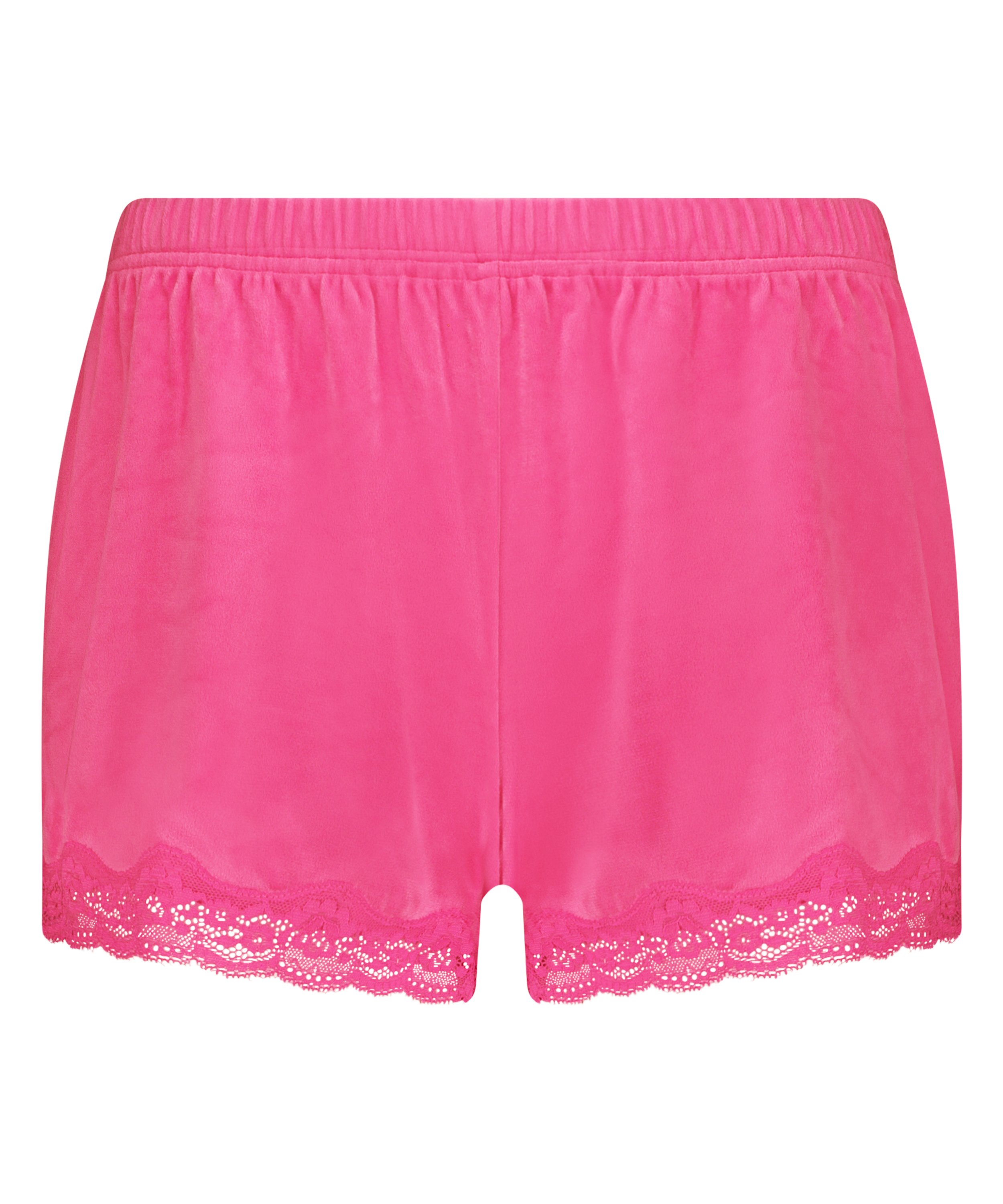 Disfruta de la comodidad con nuestro short de terciopelo, perfecto para relajarte con estilo. Confeccionado en suave tejido de terciopelo, este short combina confort y diseño elegante. Los delicados detalles de encaje añaden un toque de feminidad y sofisticación, elevando este cómodo básico. Diseñados con una cintura elástica, proporcionan un ajuste cómodo y flexible que se adapta a tus movimientos.
