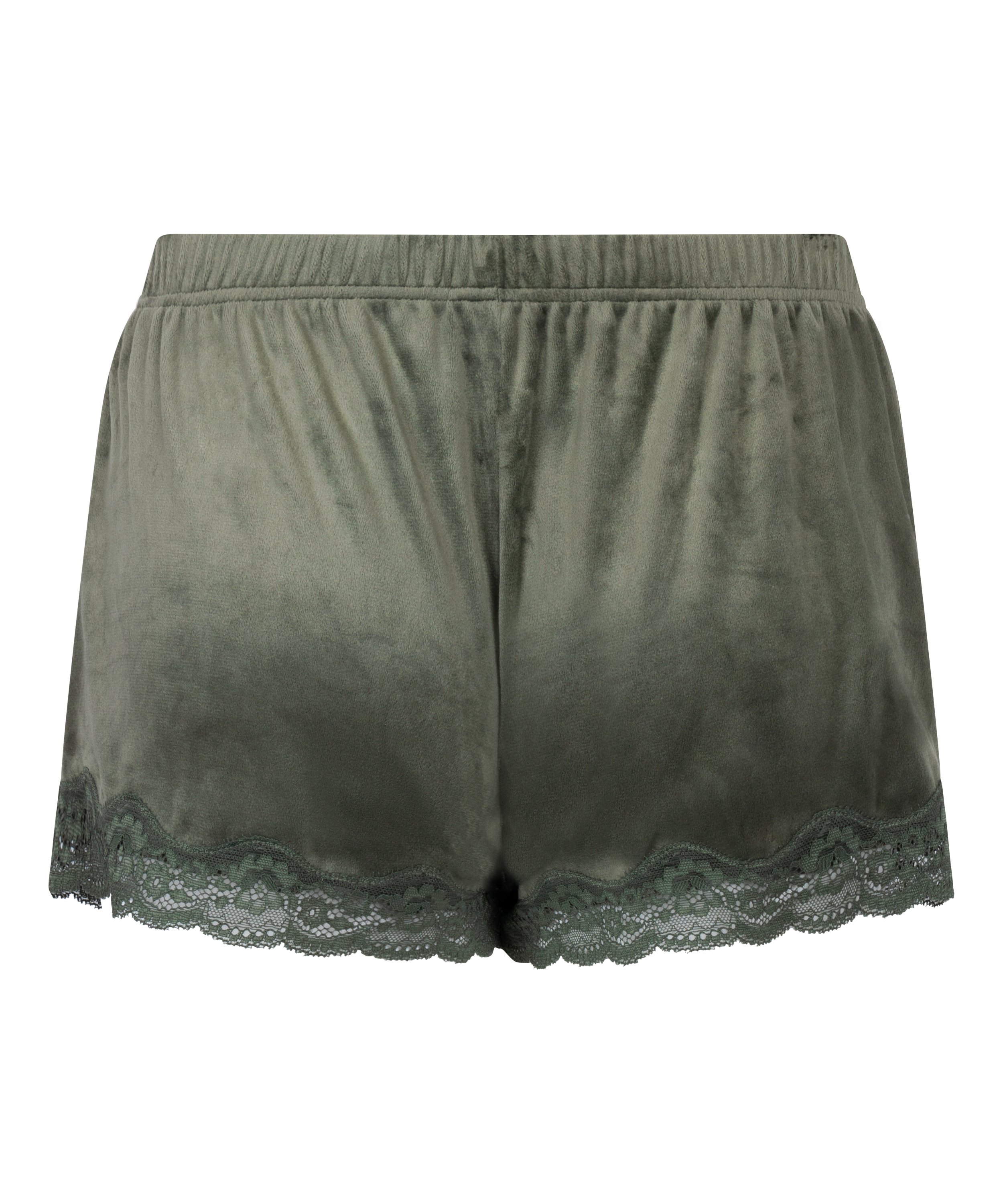 Disfruta de la comodidad con nuestro short de terciopelo, perfecto para relajarte con estilo. Confeccionado en suave tejido de terciopelo, este short combina confort y diseño elegante. Los delicados detalles de encaje añaden un toque de feminidad y sofisticación, elevando este cómodo básico. Diseñados con una cintura elástica, proporcionan un ajuste cómodo y flexible que se adapta a tus movimientos.