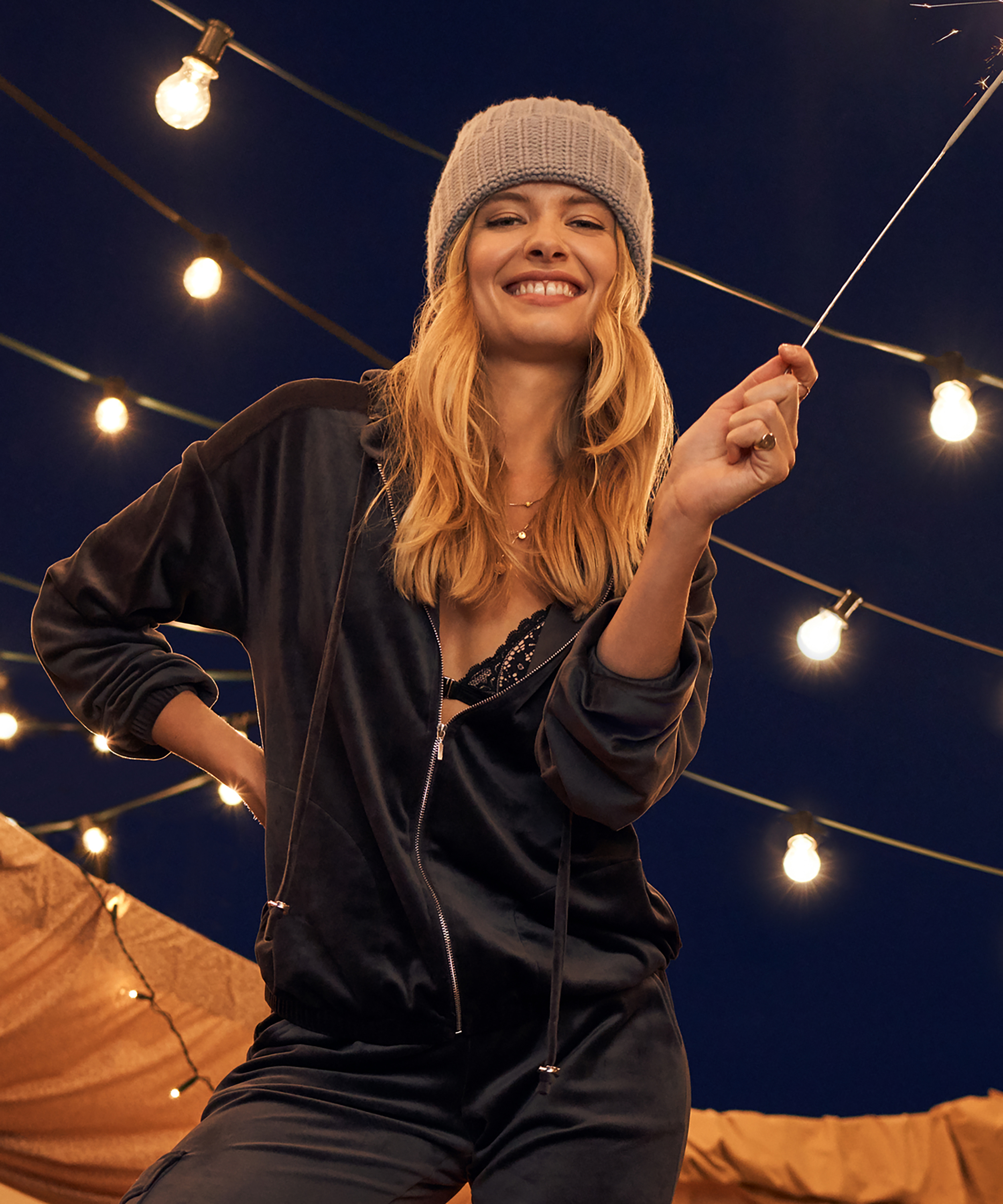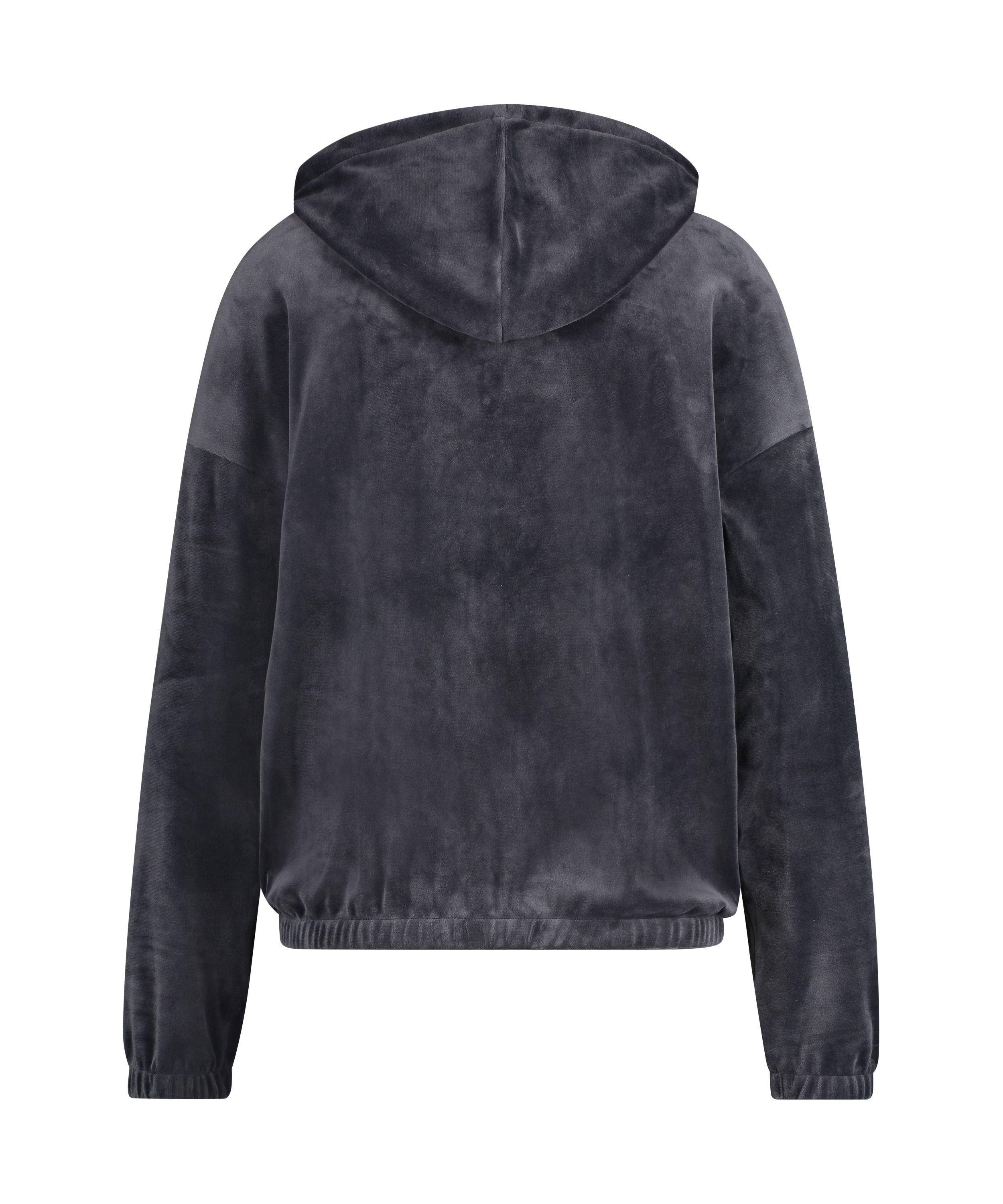 Esta sudadera con capucha es perfecta para una noche relajada gracias al suave terciopelo. Además, la sudadera tiene un acabado con una cremallerita en la parte delantera. Combínalo con los artículos a juego para completar un conjunto.