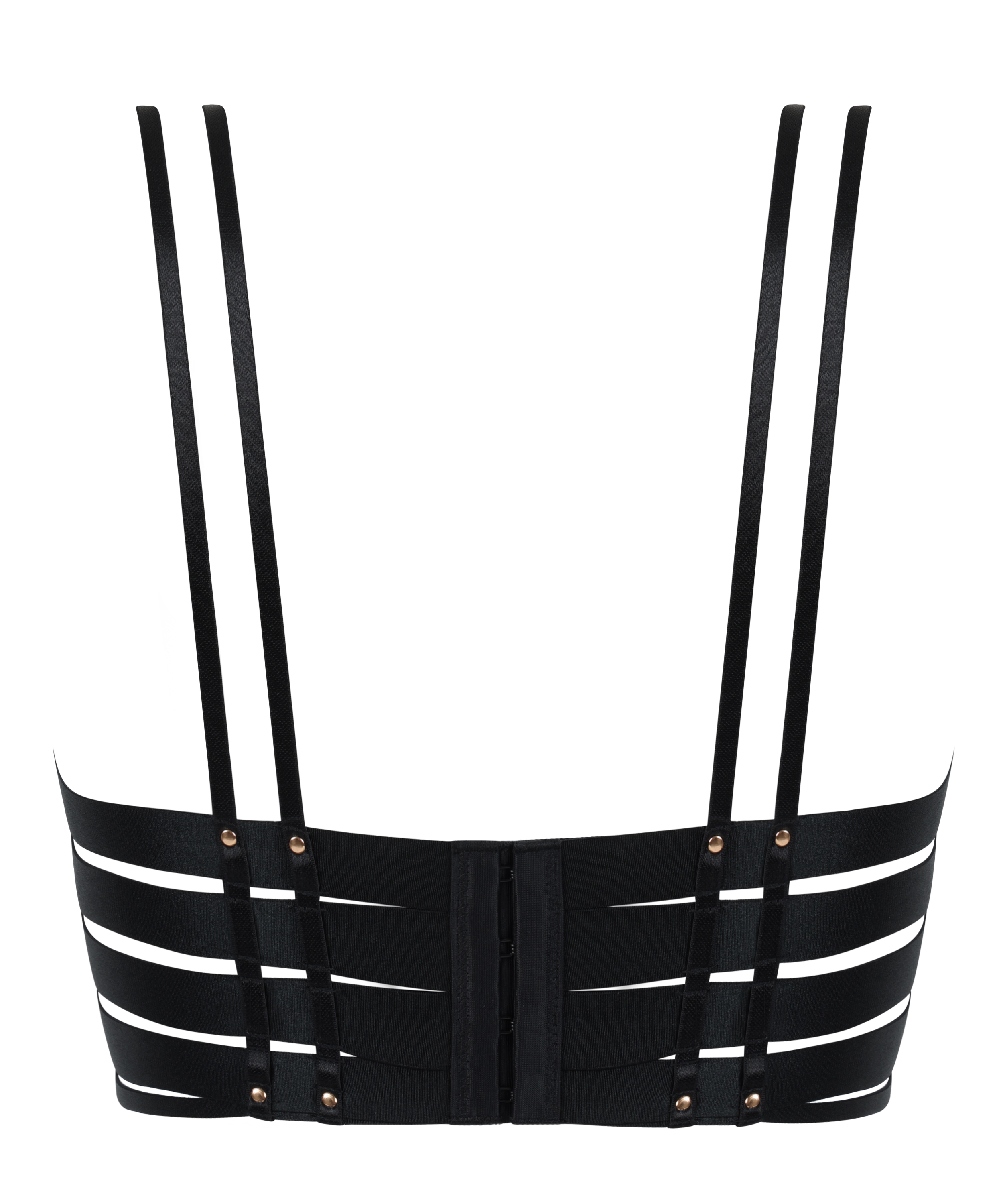 El sujetador tiene muchos detalles de tiras y aros. Parte de nuestra Colección Privada.