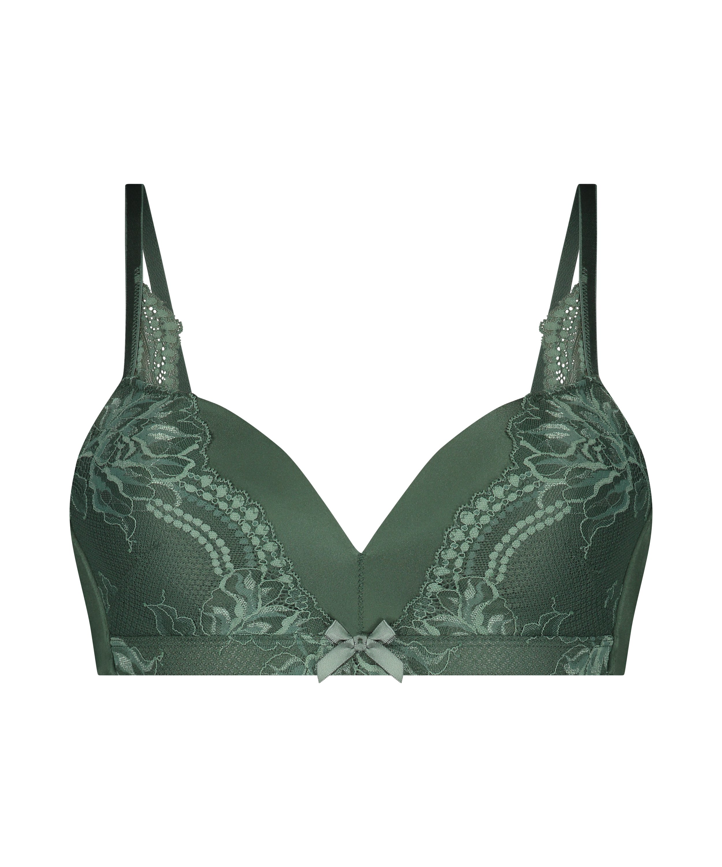 ¡Siéntete cómoda con este lujoso y elegante sujetador! Con un precioso encaje floral y un bonito lazo en el centro. El sujetador no tiene aros, por lo que es muy cómodo de llevar. Combínalo con las braguitas Lycke para obtener un conjunto completo.