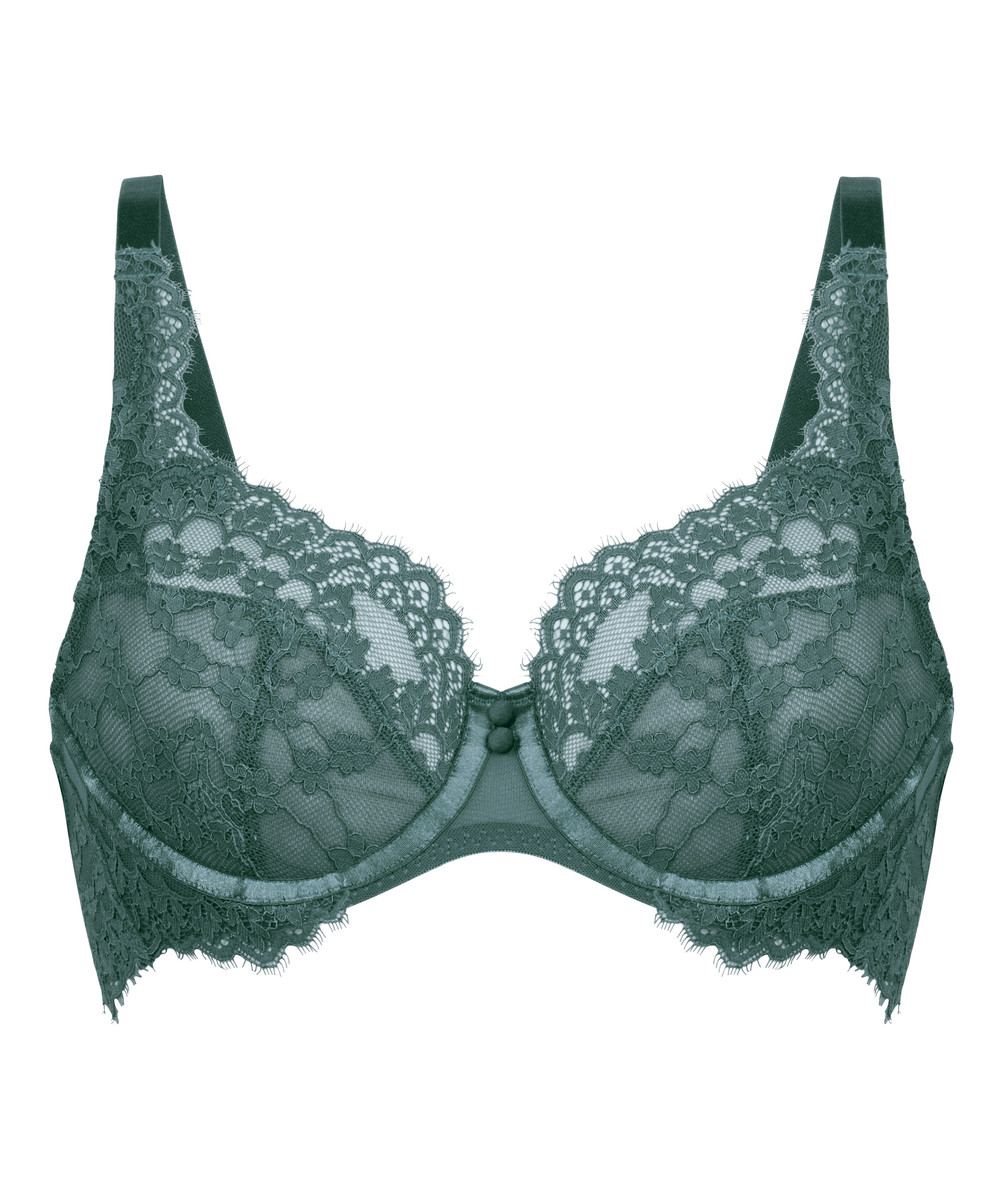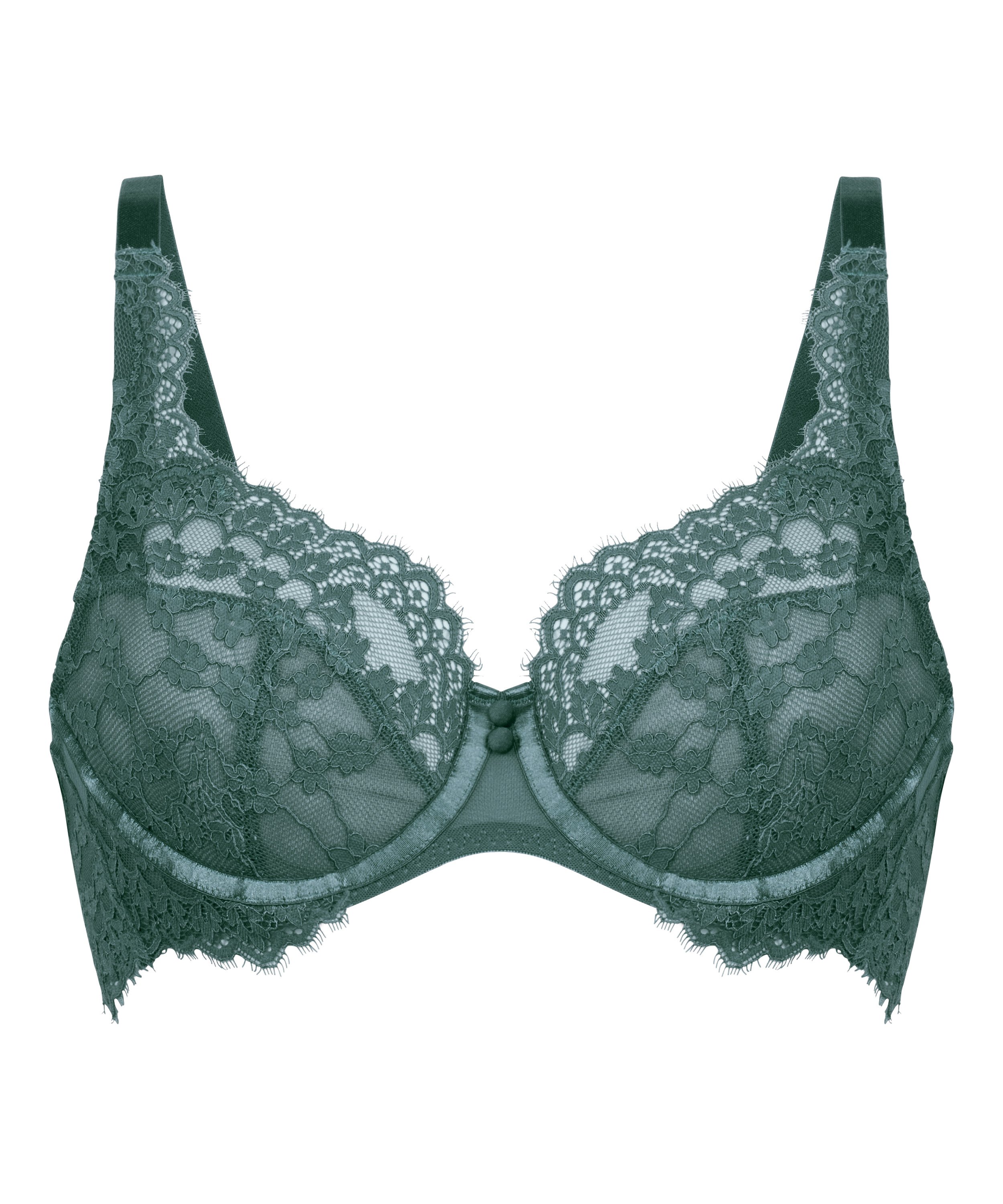 ¡Luce espectacular con este sujetador! Este sujetador de aros no preformado está confeccionado con encaje y es semitransparente. ¡Combínalo con los artículos a juego para completar tu conjunto!