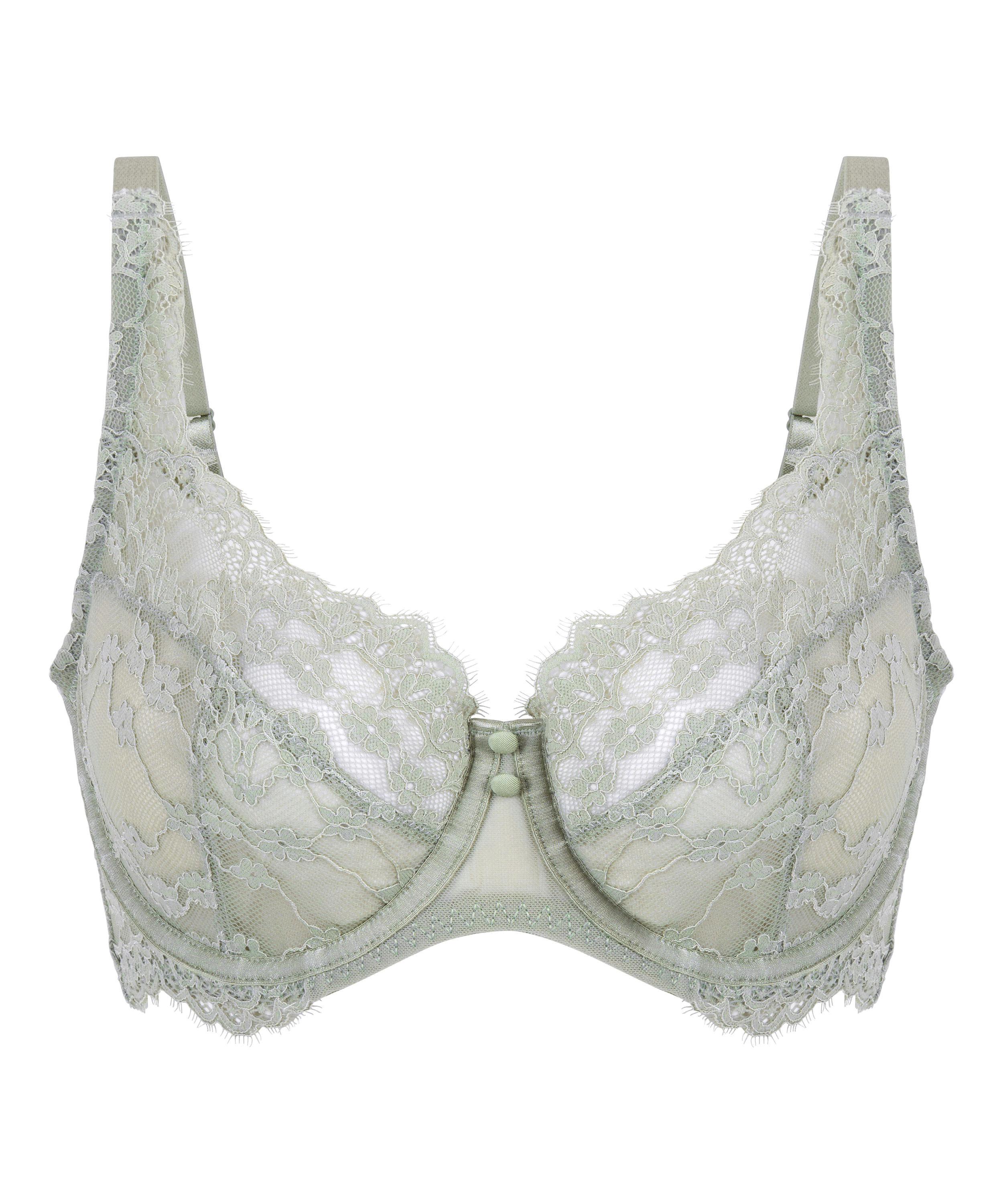 ¡Luce espectacular con este sujetador! Este sujetador de aros no preformado está confeccionado con encaje y es semitransparente. ¡Combínalo con los artículos a juego para completar tu conjunto!