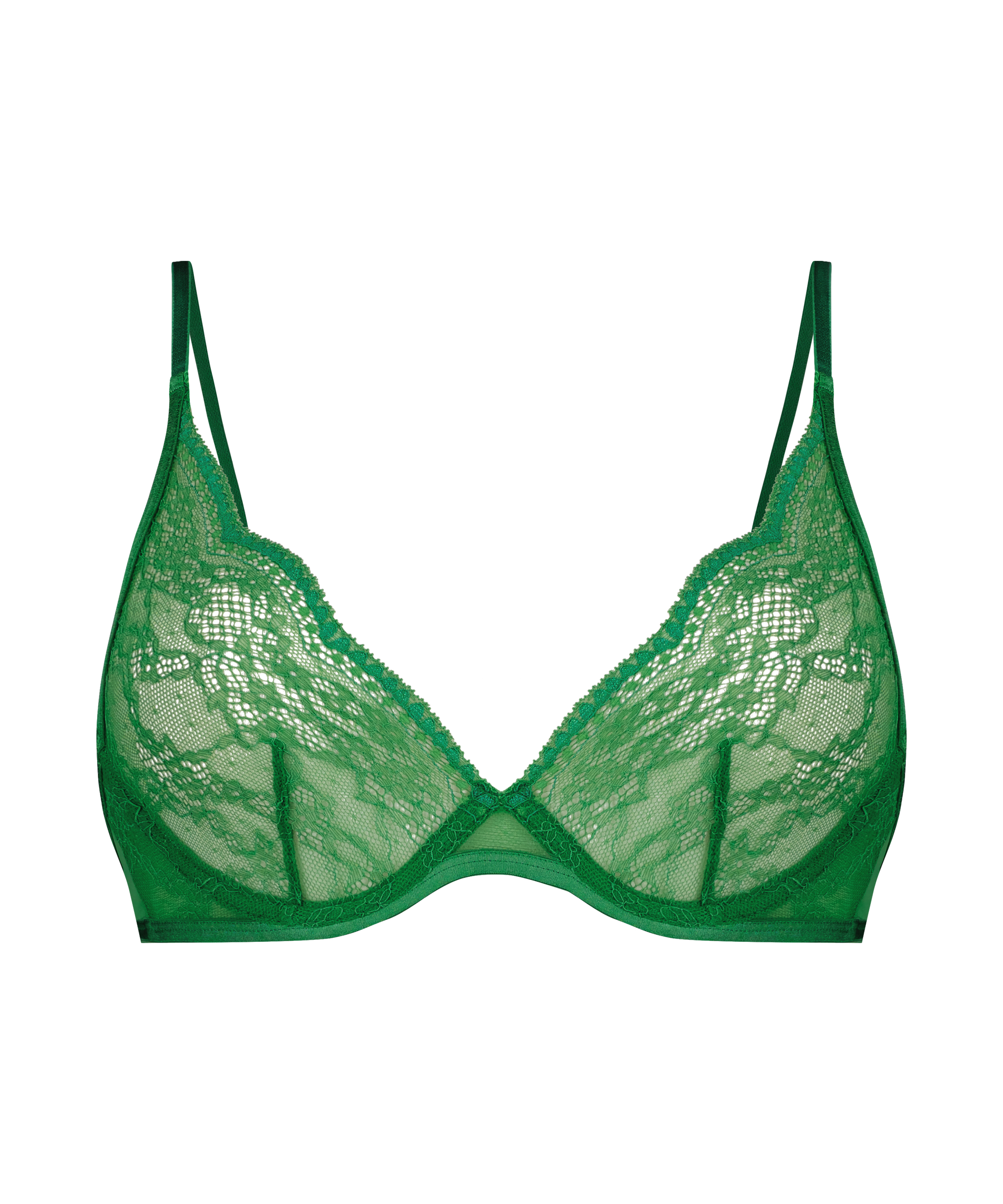 ¡Luce ideal en este precioso sujetador! El sujetador tiene aros y no está preformado. Tiene mucho encaje con un bonito patrón. Combina con una braguita a juego.