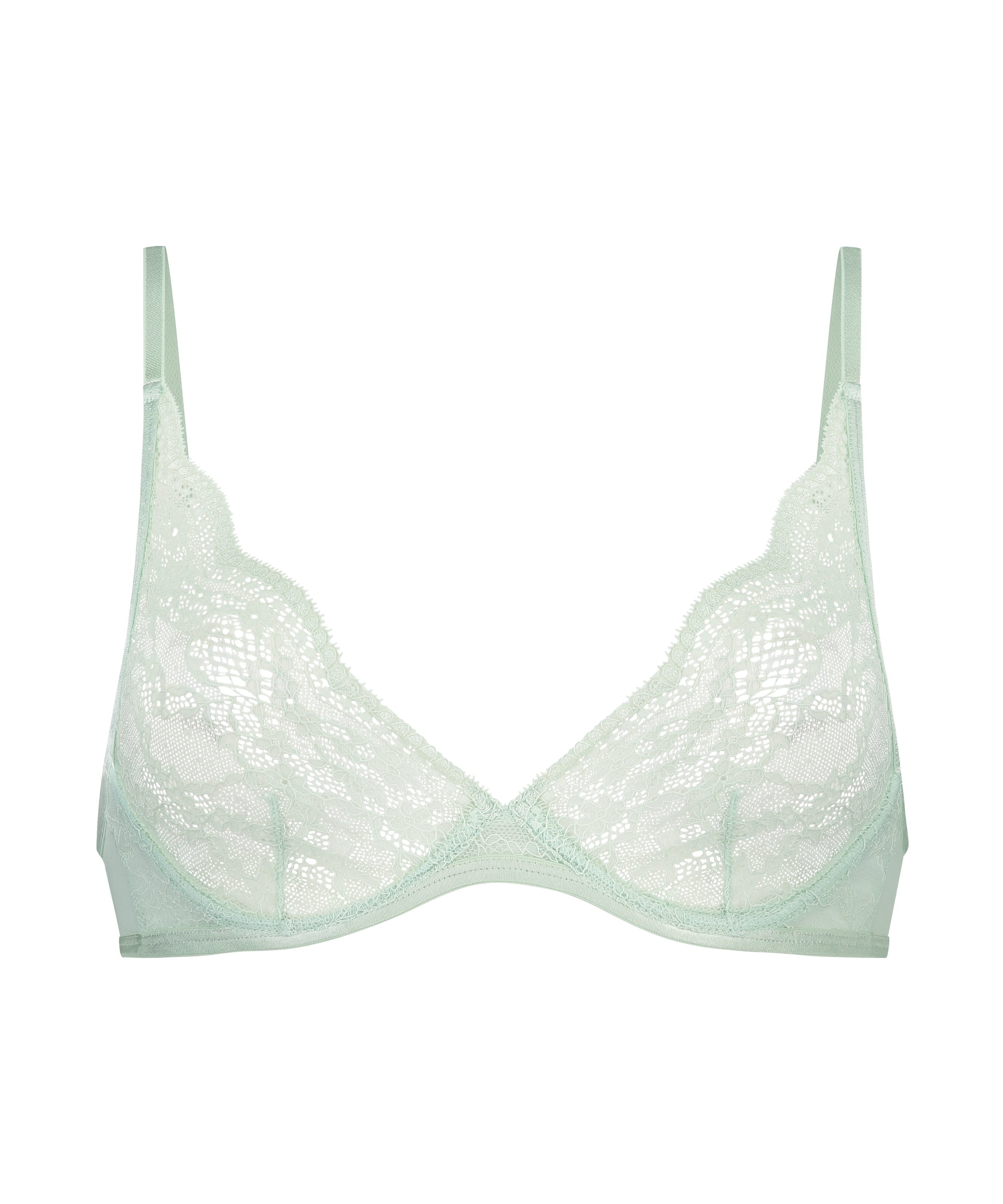 ¡Luce ideal en este precioso sujetador! El sujetador tiene aros y no está preformado. Tiene mucho encaje con un bonito patrón. Combina con una braguita a juego.