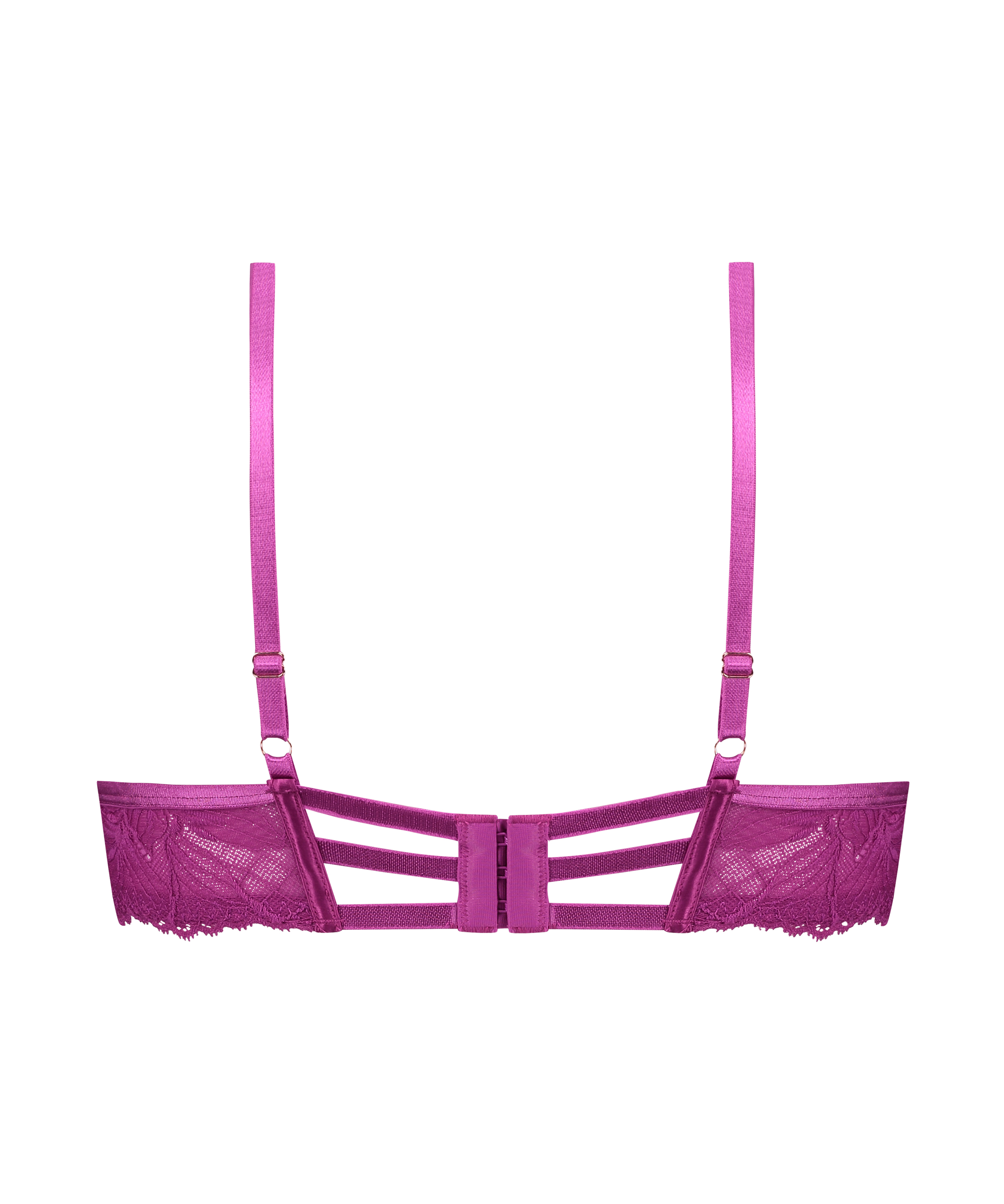 ¡Siéntete sexy con este cómodo sujetador sin relleno!Presenta detalles recortados y de tiras en las copas y en la espalda. Tiene un aspecto semitransparente completo de encaje y malla, rematado con un lindo lazo. ¡Completa el conjunto con las braguitas a juego! Forma parte de la Colección Private.