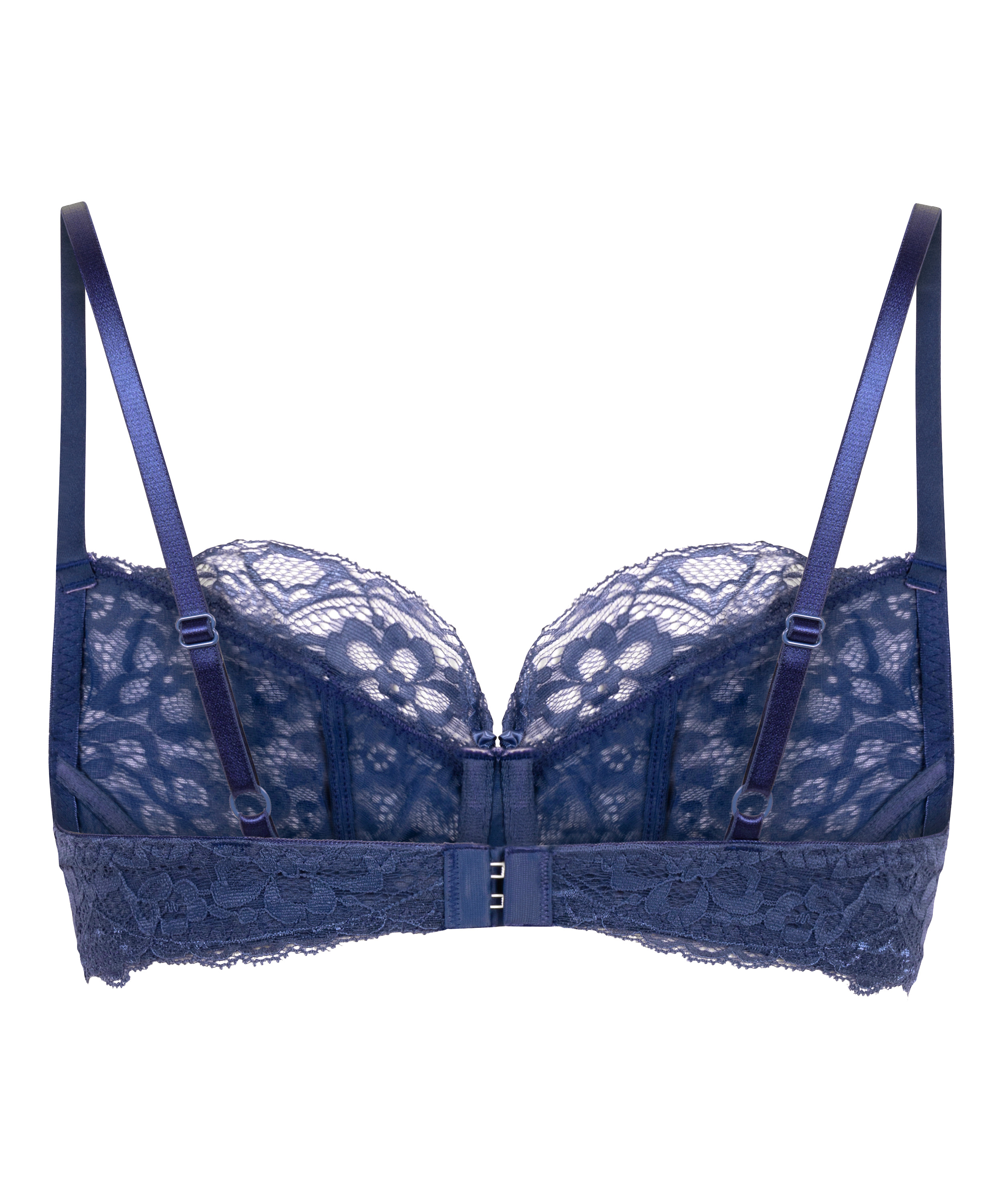 Este sujetador no preformado está completamente cubierto de encaje, ¡y eso hace que sea de lo más sexi! El lacito entre las copas le da un bonito toque final. Combínalo con la braguita a juego para completar tu conjunto.