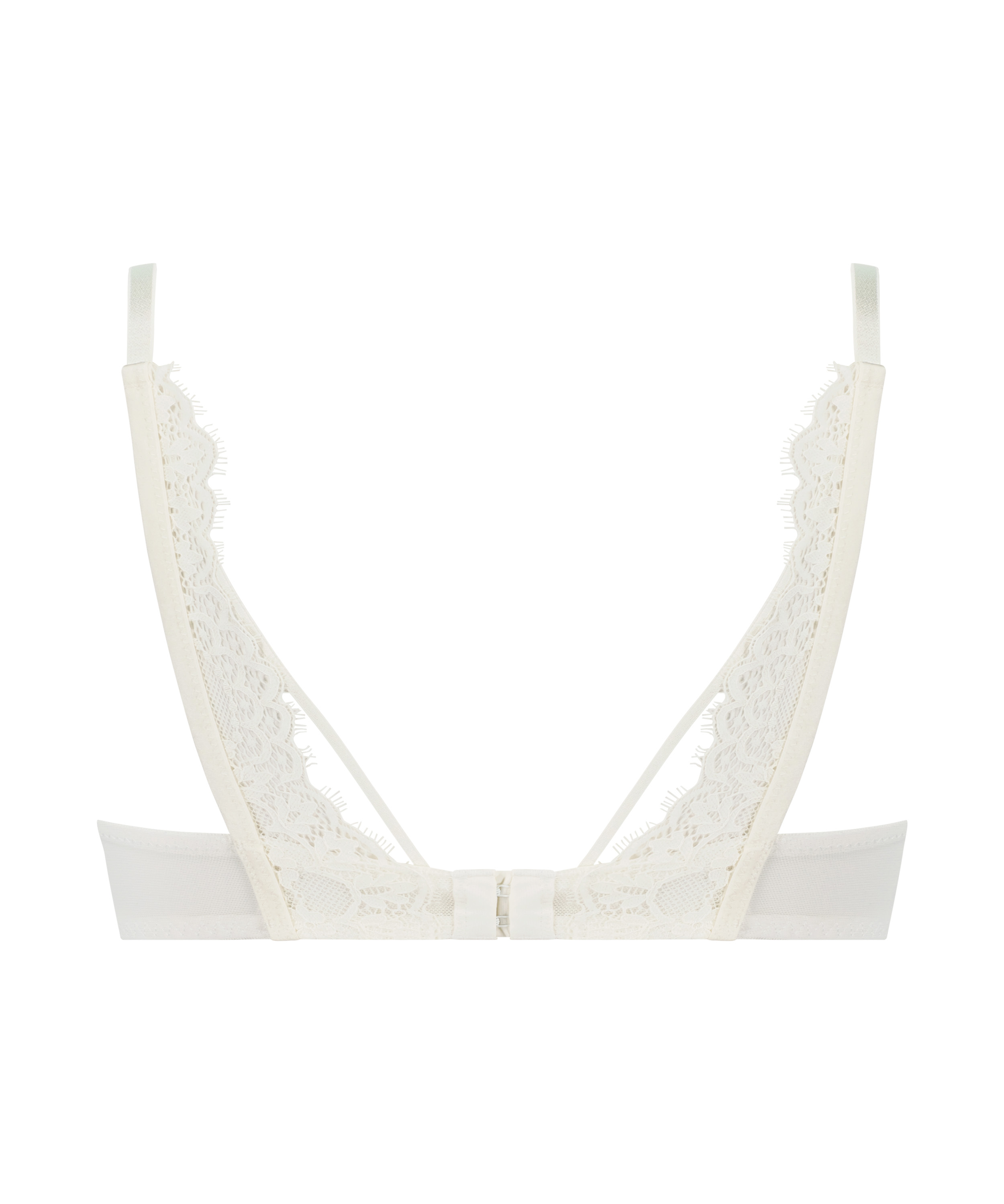 Este divertido sujetador cuenta con encaje sobre las copas. Entre las copas tiene tres bonitos lacitos de un color llamativo.