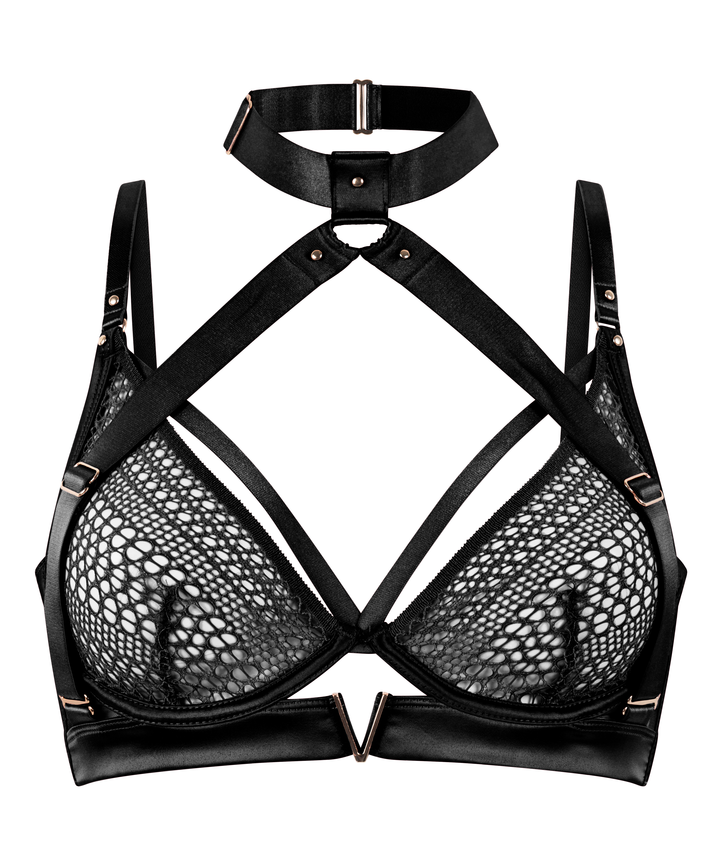 Libérate con este sujetador diseñado para cautivar y reforzar. Los recortes y detalles de tiras se fusionan creando un look atrevido. Cuenta con copas que realzan tu forma natural.