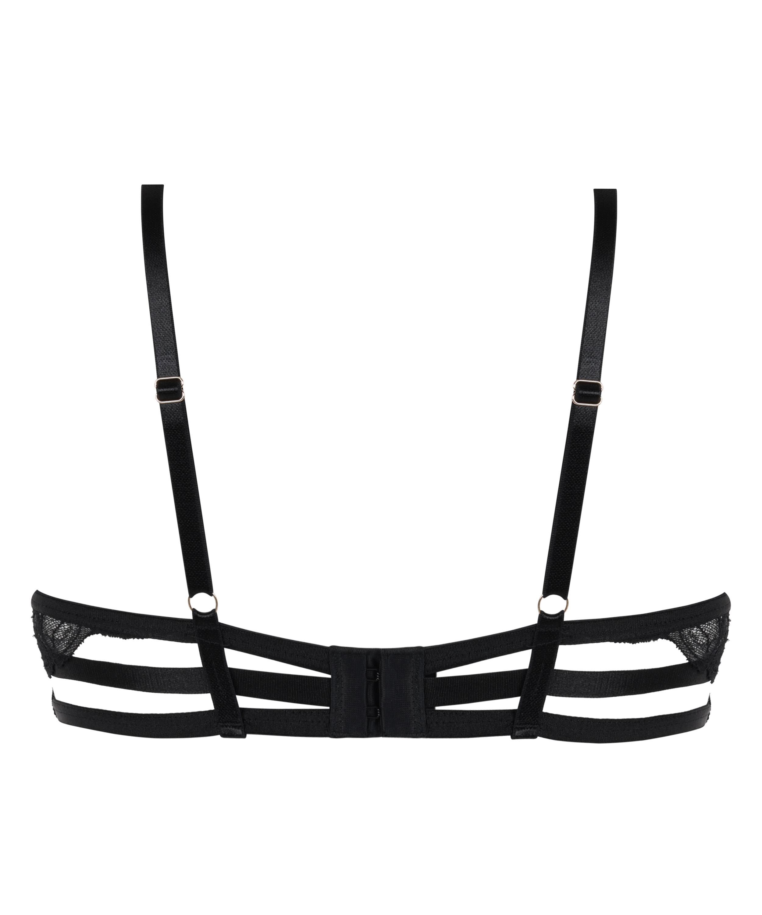 Este sujetador ofrece un look elegante y estructurado con tela de acabado satinado que se adapta suavemente a tus formas, brindando tanto comodidad como soporte. Los detalles de ojales a lo largo de las copas agregan un toque audaz y elaborado.
